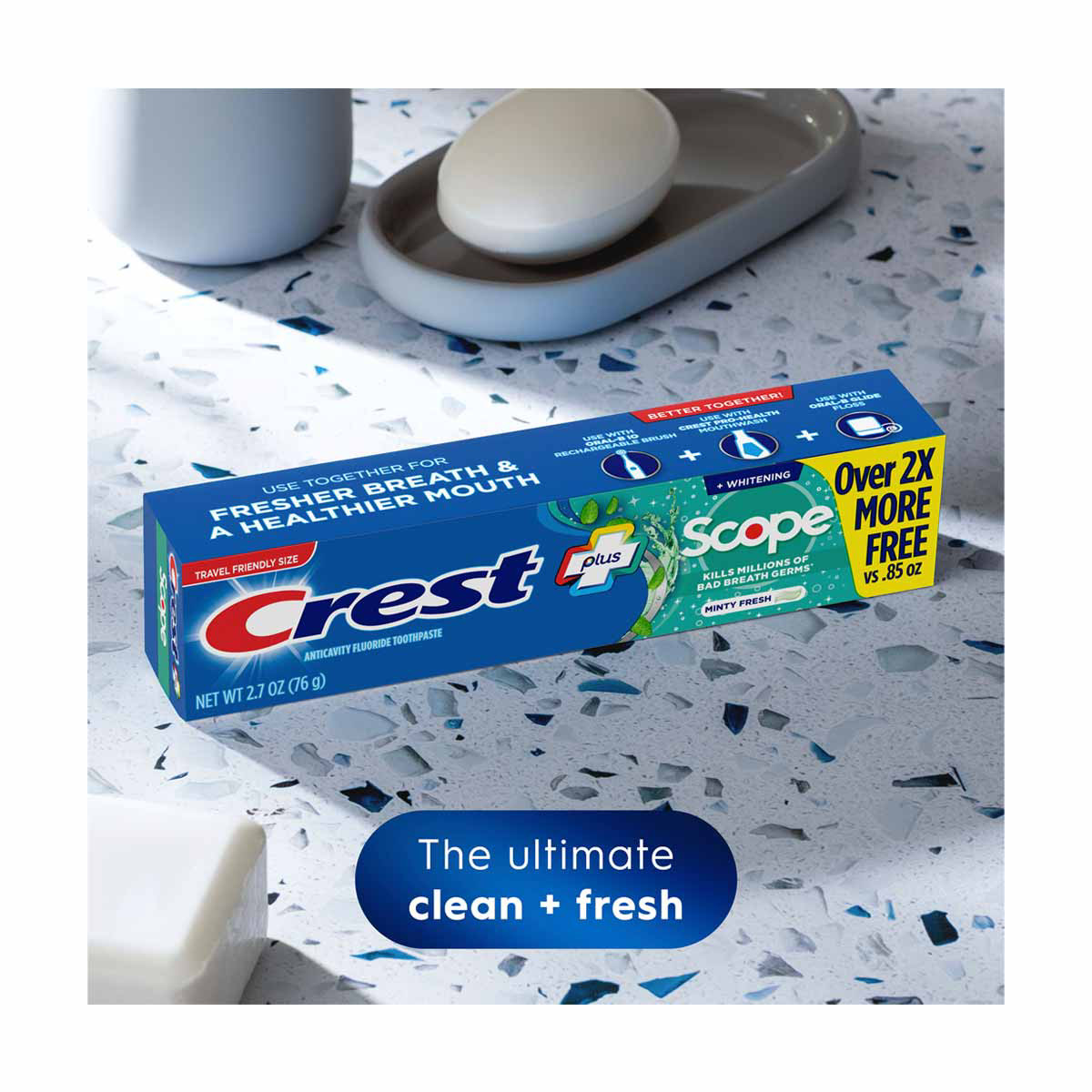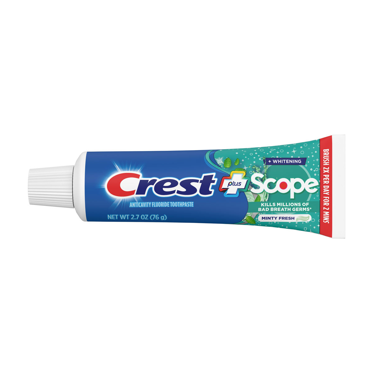 • You will receive (1) 2.7 oz tube of Crest Whitening Plus Scope Minty Fresh Toothpaste