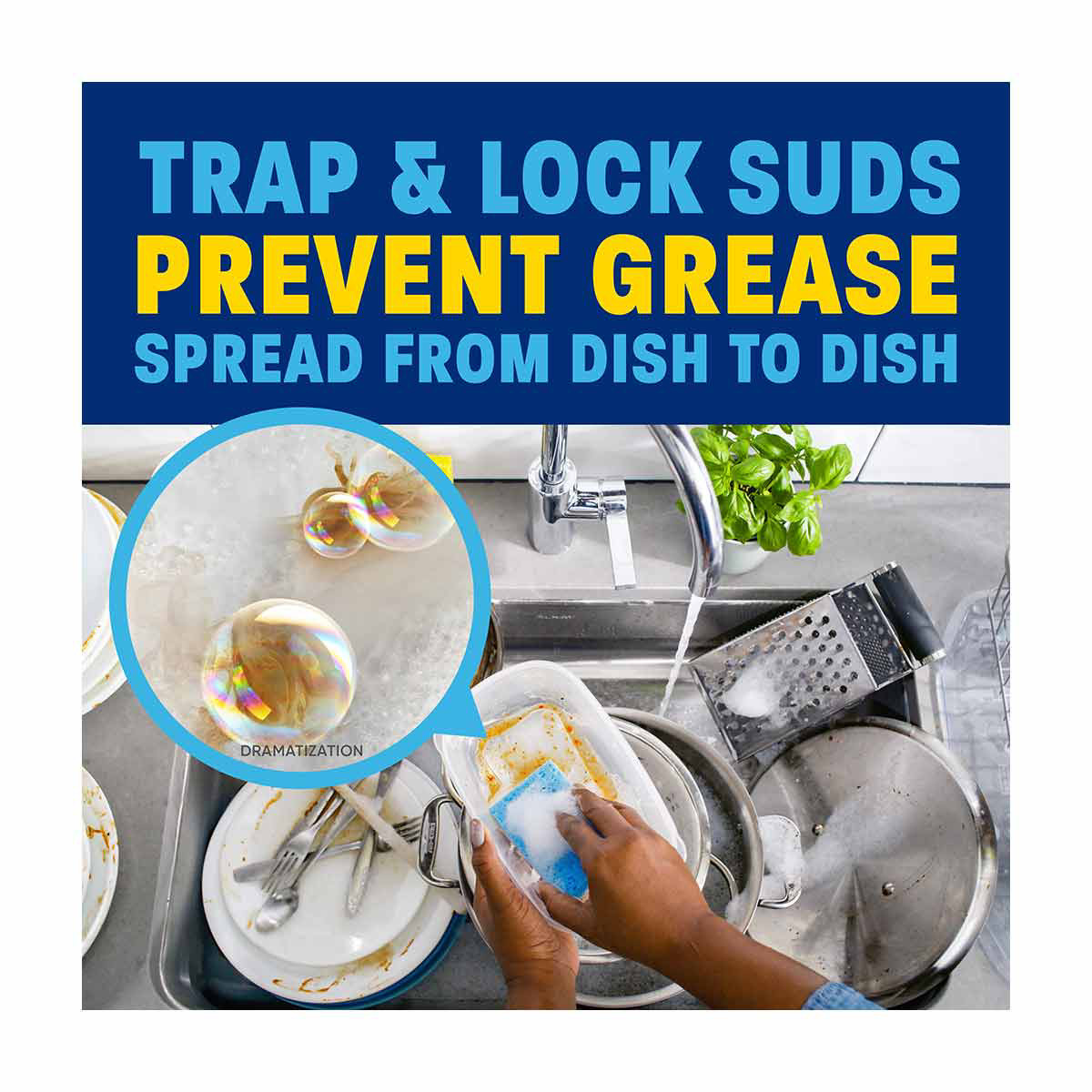- TRAP & LOCK TECHNOLOGY: Dawn PowerSuds dishwashing liquid traps, locks, and removes grease from dish to dish