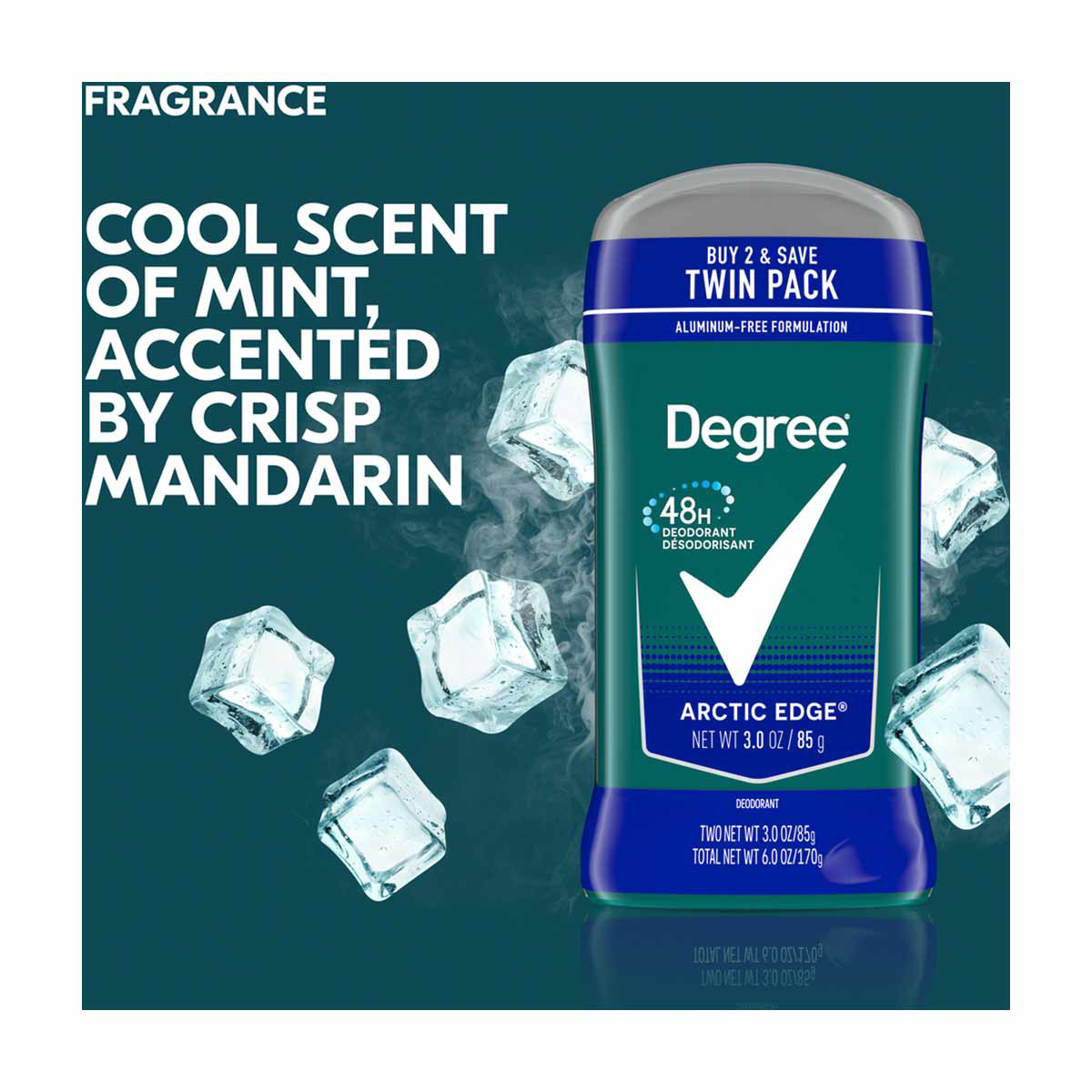 • ARCTIC SCENT: Stay fresh with this deodorant. Degree Men Arctic Edge Deodorant features a scent of cool mint, crisp mandarin, and winter melon to keep you feeling fresh and cool.