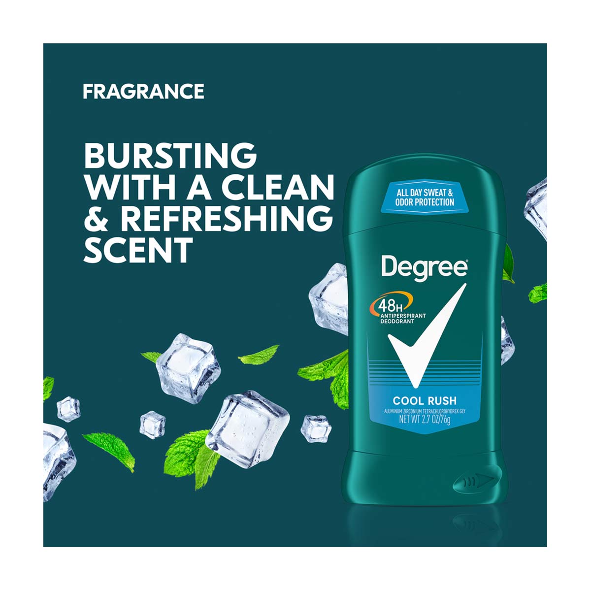• CRISP SCENT: Stay fresh longer with this antiperspirant for men. Degree Men Cool Rush Antiperspirant Deodorant features a clean, refreshing scent to keep you feeling energized.