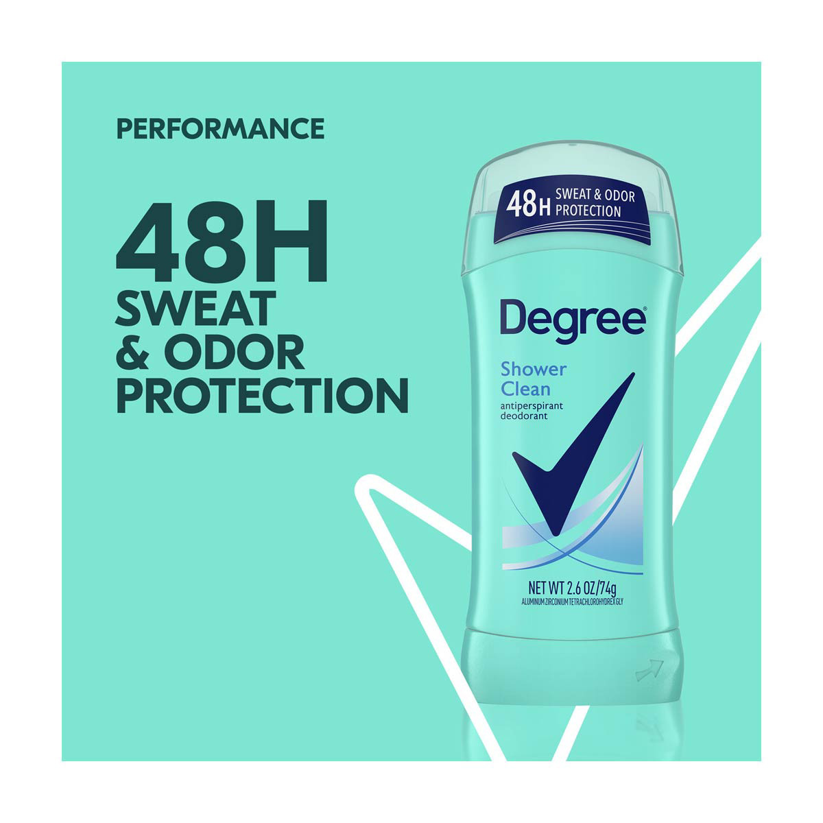 - 48-HOUR PROTECTION: Active lives need Degree Women Shower Clean Antiperspirant Deodorant. This antiperspirant deodorant for women delivers confidence with 48-hour sweat and odor protection