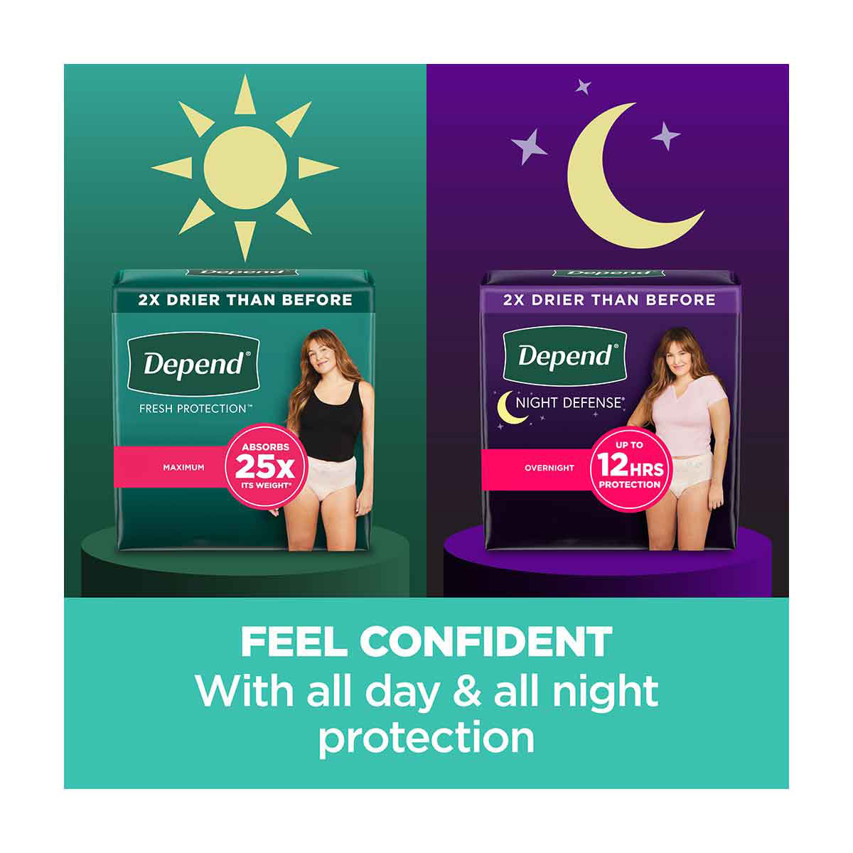 • Depend Fresh Protection Adult Incontinence & Postpartum Bladder Leak Underwear for Women, medium (31–37" waist), 18 count; Depend’s packaging and product may vary