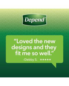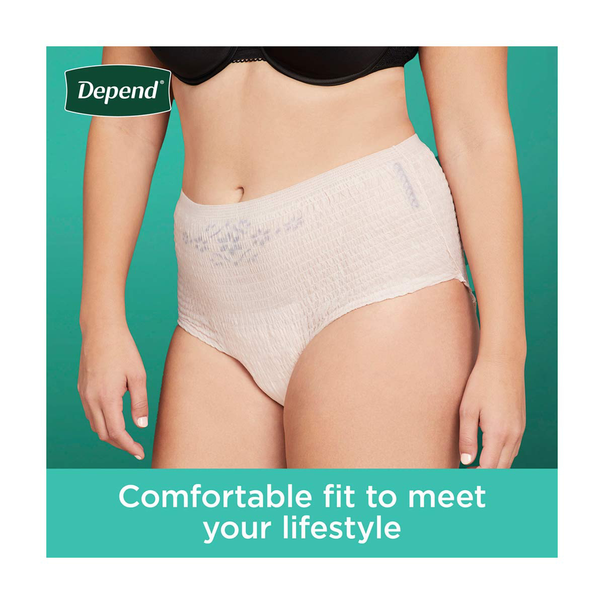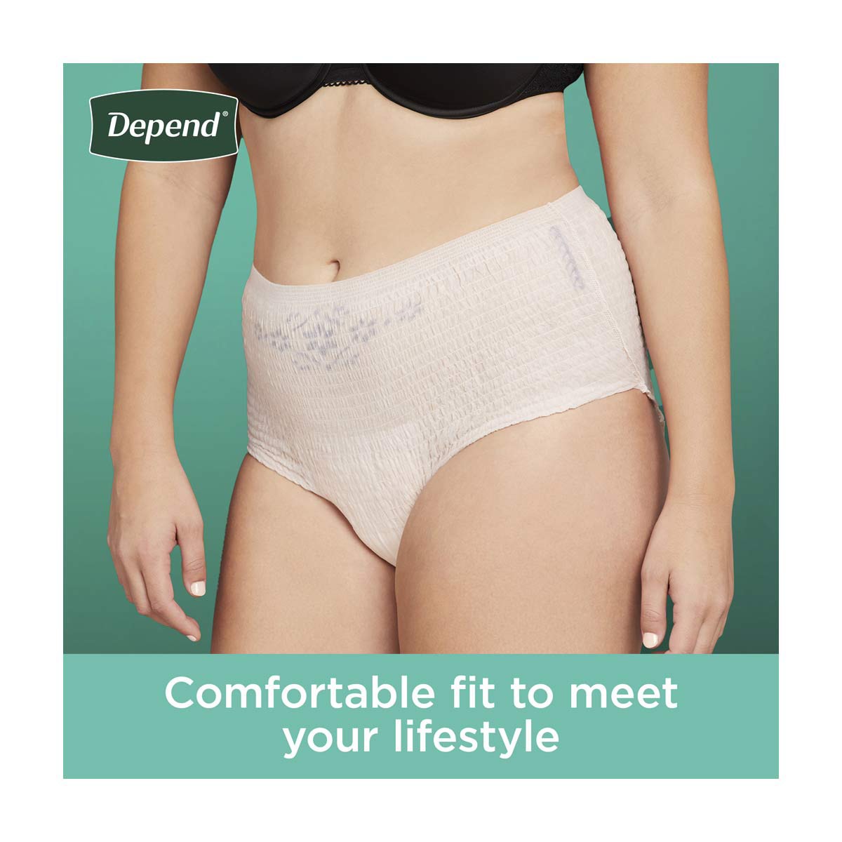 - Depend Fresh Protection Adult Incontinence & Postpartum Bladder Leak Underwear for Women, large (38–44" waist), 28 count; Depend’s packaging and product may vary