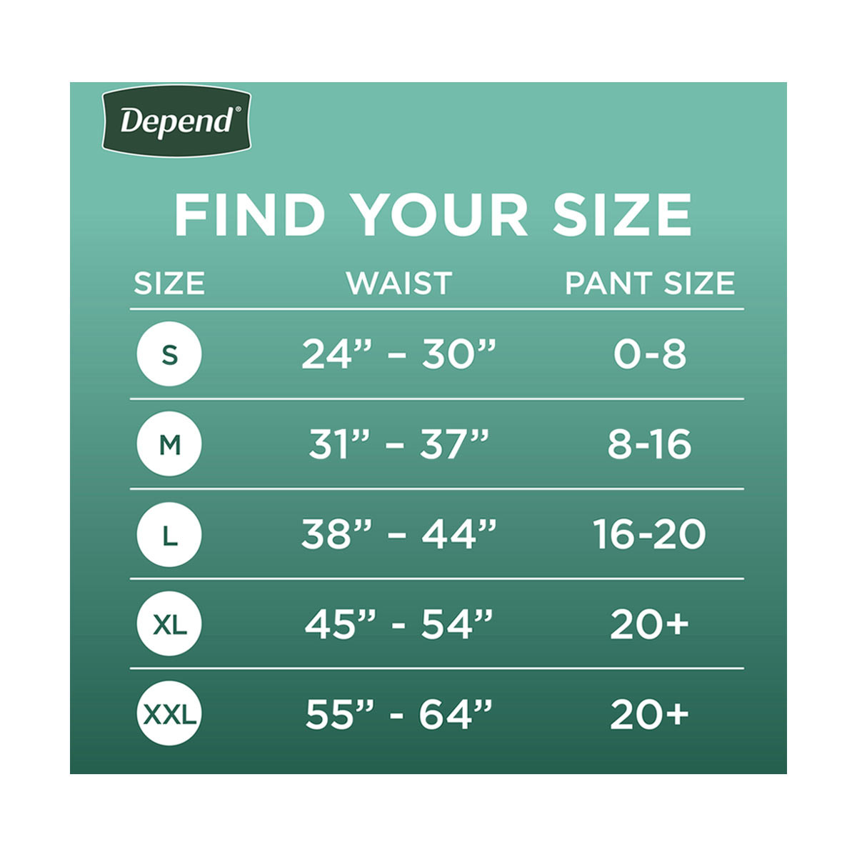 - Depend Fresh Protection Adult Incontinence & Postpartum Bladder Leak Underwear for Women, small (24–30" waist), 32 count; Depend’s packaging and product may vary