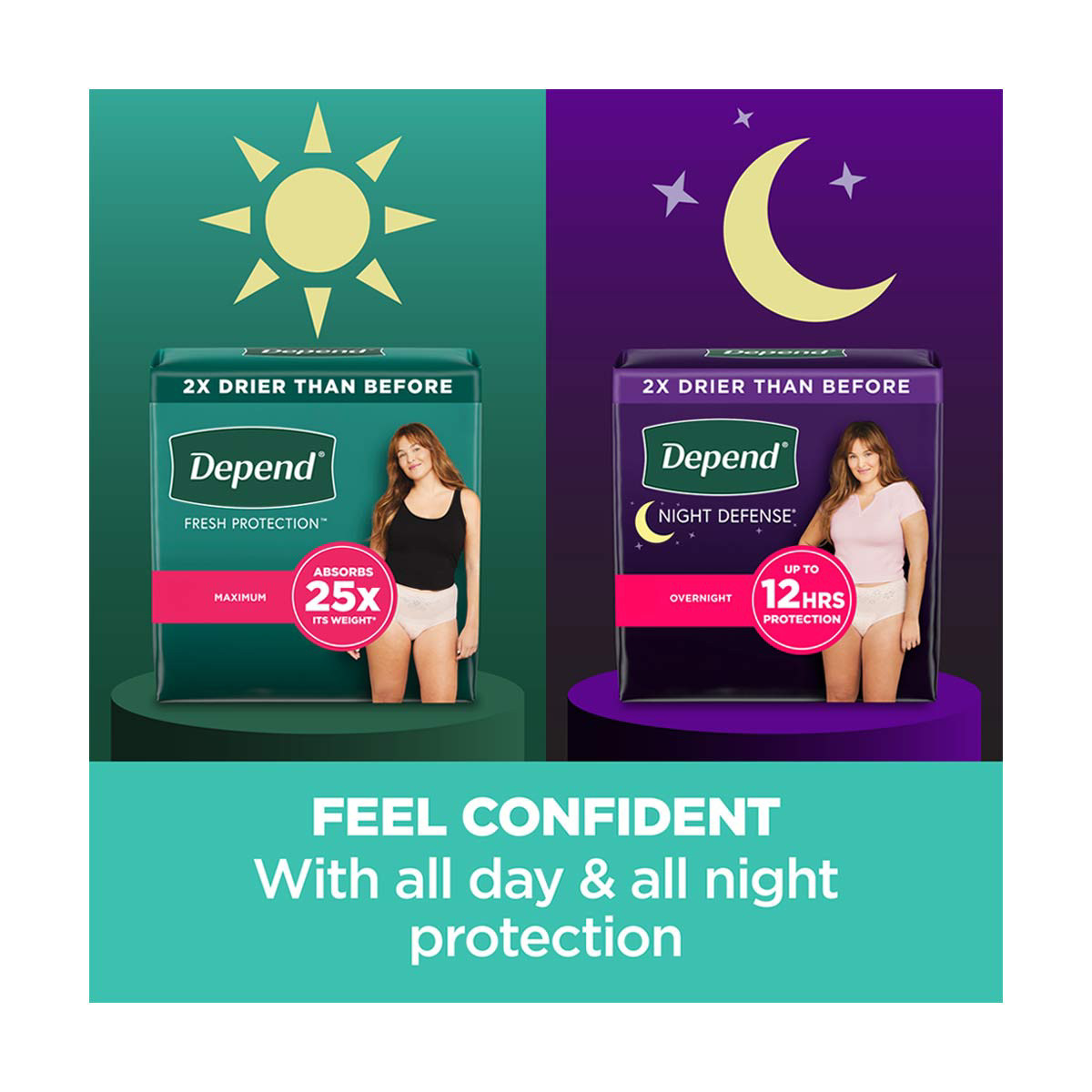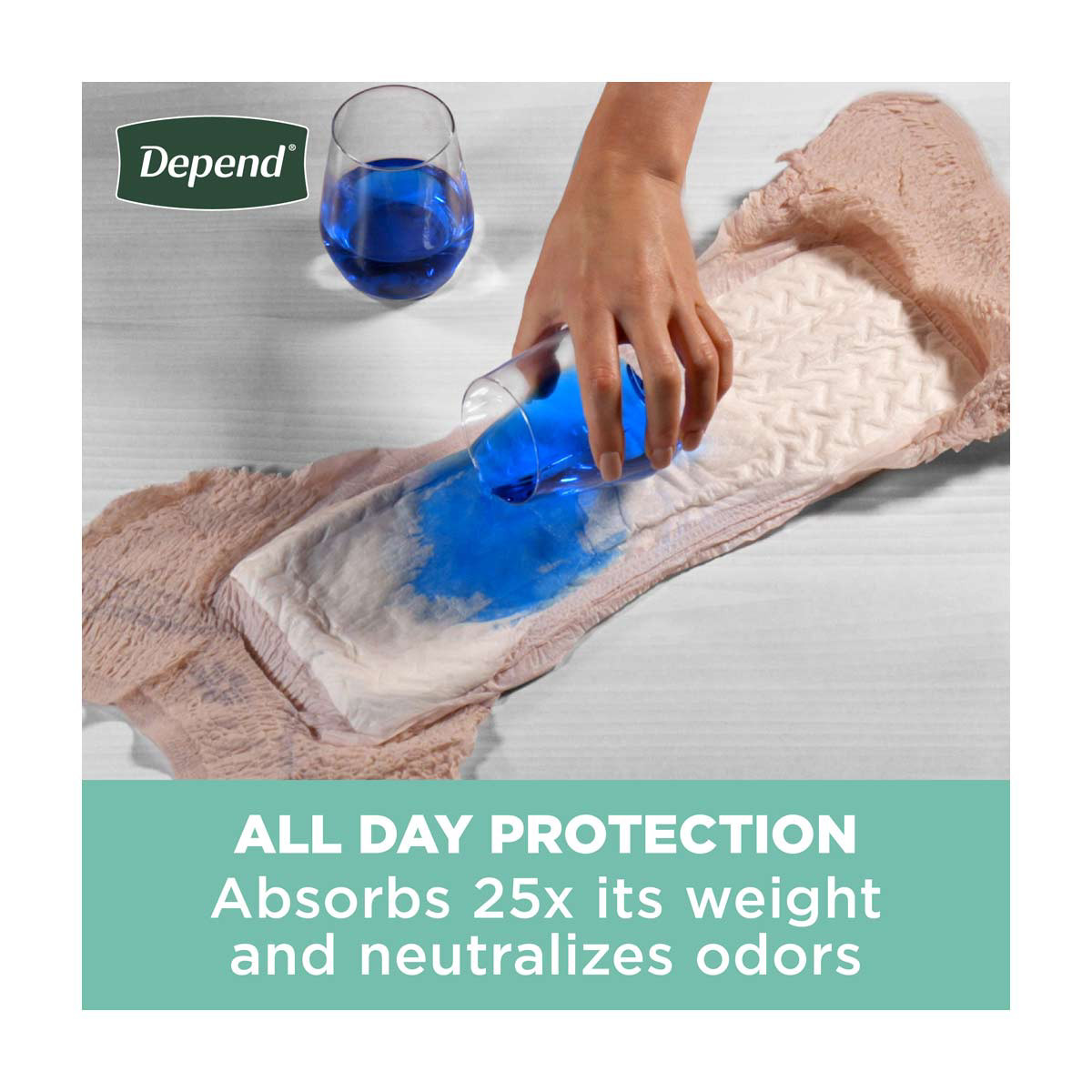 - Maximum Absorbency: Depend women’s bladder leakage underwear features a super absorbent core which absorbs 25x its weight* and turns liquid into gel for all-day protection (*weight of super absorbent material)