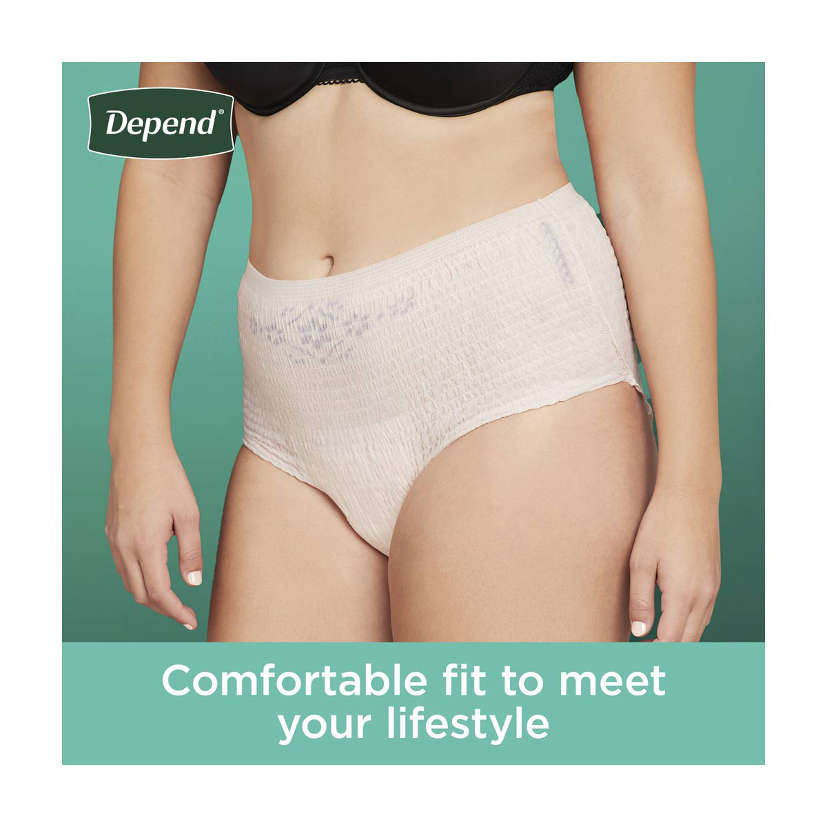 - 2x Drier Than Before: Depend’s improved liner wicks wetness away from your skin to help keep you dry all day