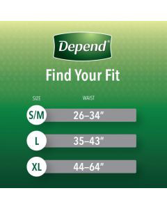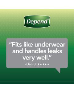 • Depend Fresh Protection Incontinence Underwear for Men, large (35–43" waist), 17 count; same trusted protection, improved; Depend’s packaging and product may vary