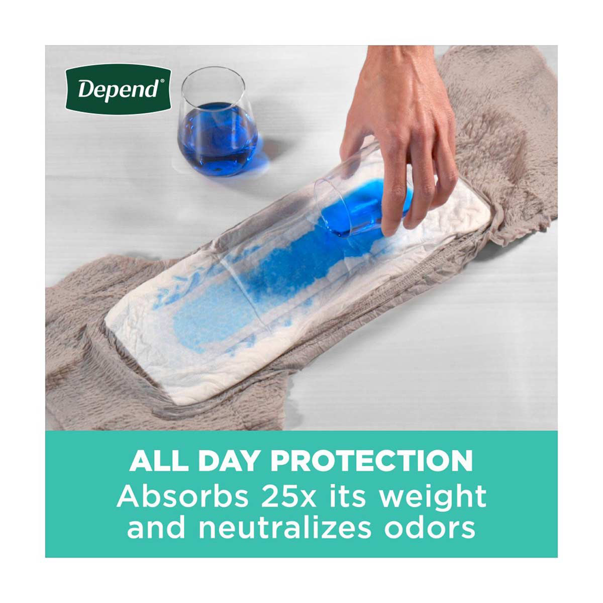 - Maximum Absorbency: Depend men’s bladder leakage underwear features a super absorbent core which absorbs 25x its weight* and turns liquid into gel for all-day protection (*weight of super absorbent material)