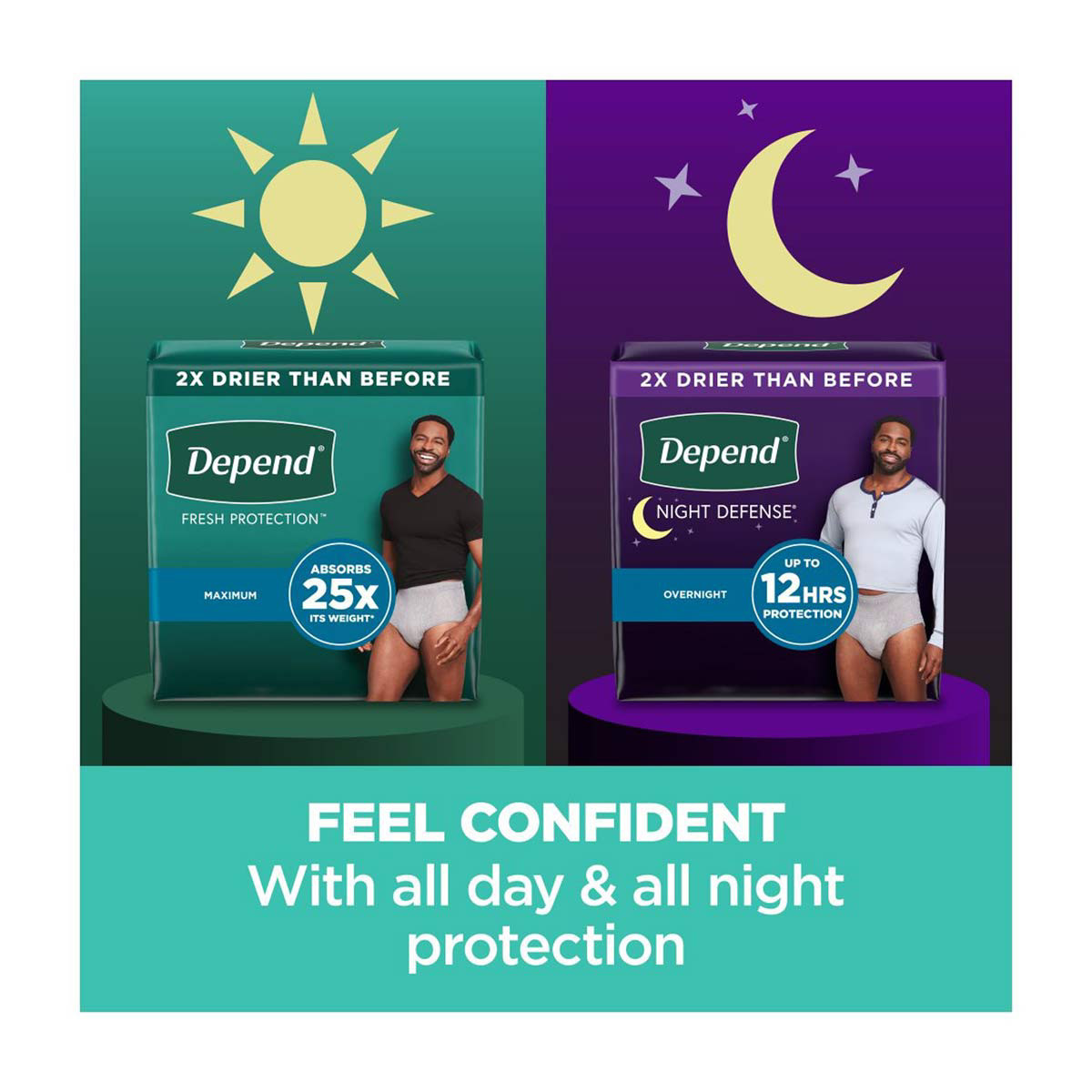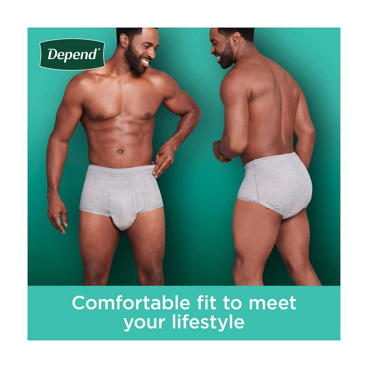 - Depend Fresh Protection Incontinence Underwear for Men, small/medium (26–34" waist), 19 count; Depend’s packaging and product may vary