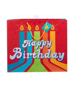 • Available in assorted designs: "Happy birthday" red with candles, "happy birthday" blue & yellow with glitter