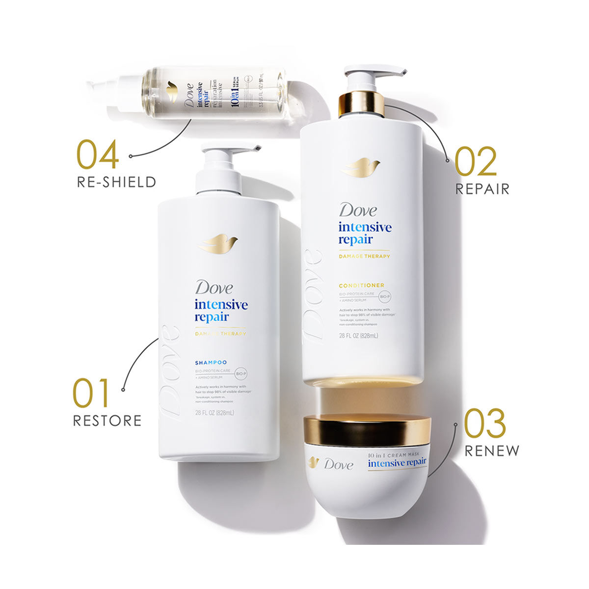- HAIR REBORN: Dove Intensive Repair hair conditioner restores with every wash—hair is reborn 10X stronger* when using SH/CD or SH/Mask vs. non-conditioning shampoo