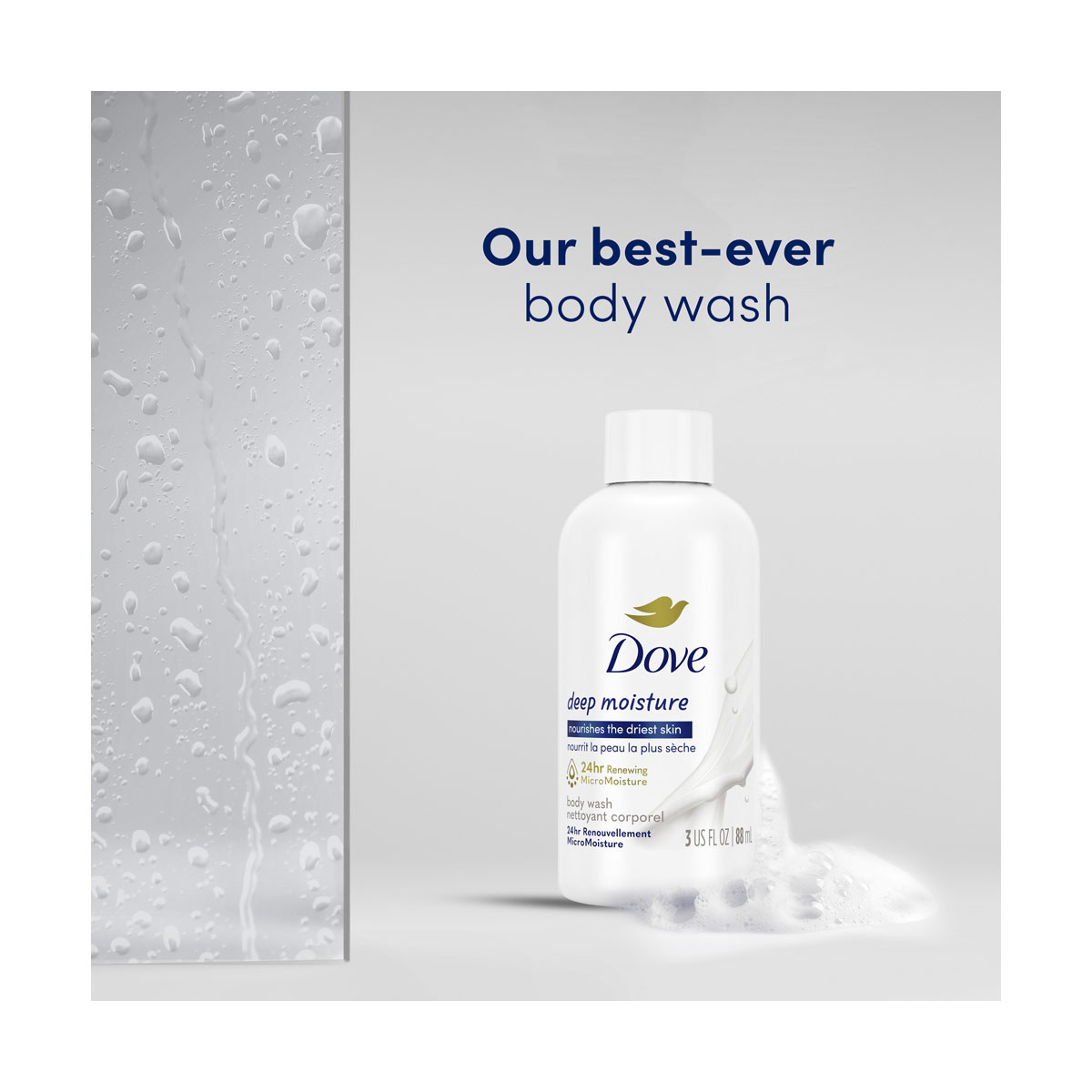 - Dove deeply nourishing body wash, formulated with millions of MicroMoisture droplets, leaves skin soft as silk