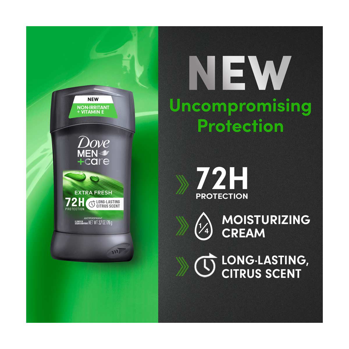 • 72H Uncompromising Protection: Dove Men+Care Extra Fresh Antiperspirant deodorant revolutionary formula gives you powerful 72-hour sweat and odor protection while moisturizing your skin