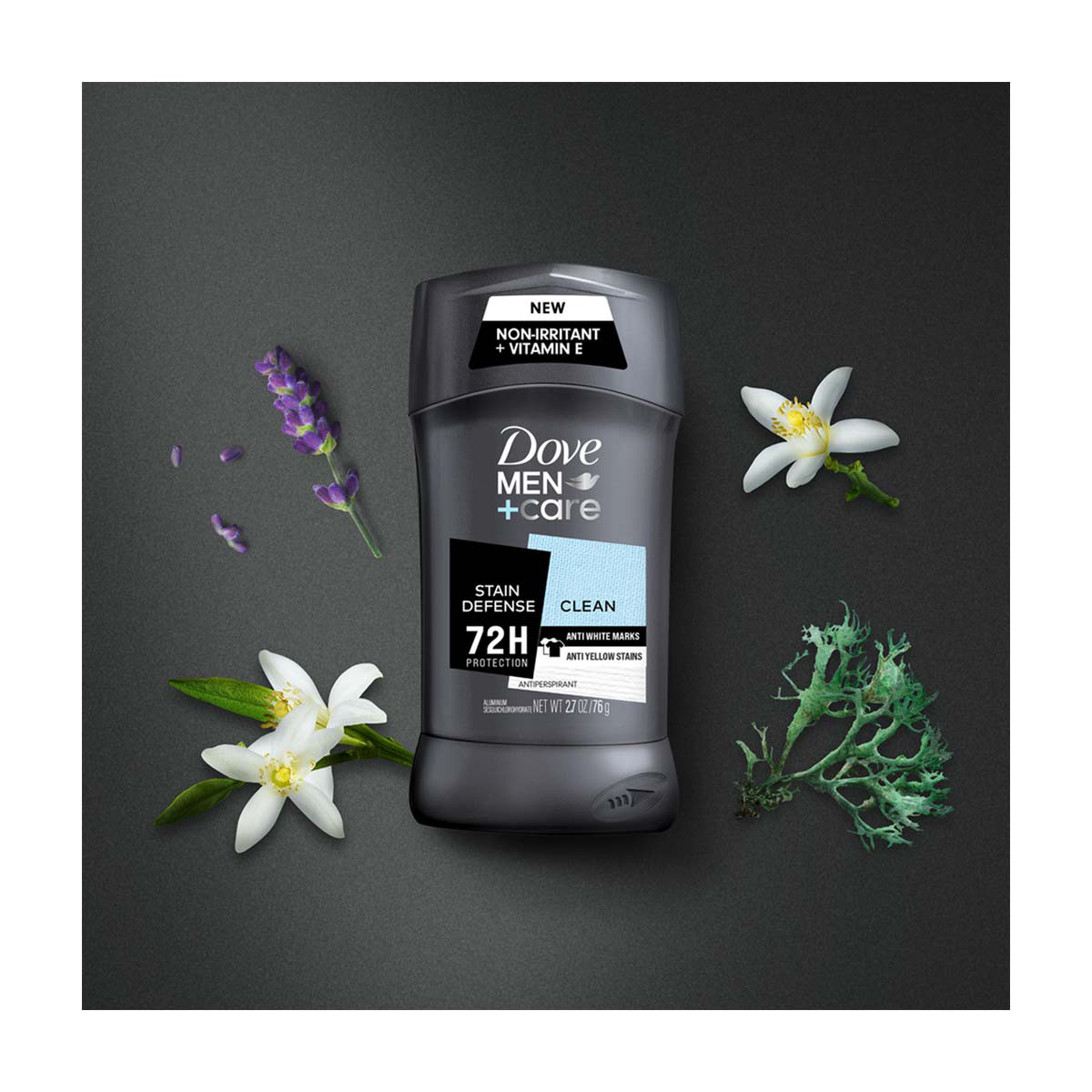 - 72H UNCOMPROMISING PROTECTION: Dove Men+Care Stain Defense Clean Antiperspirant Deodorant Stick delivers powerful 72h sweat and odor protection