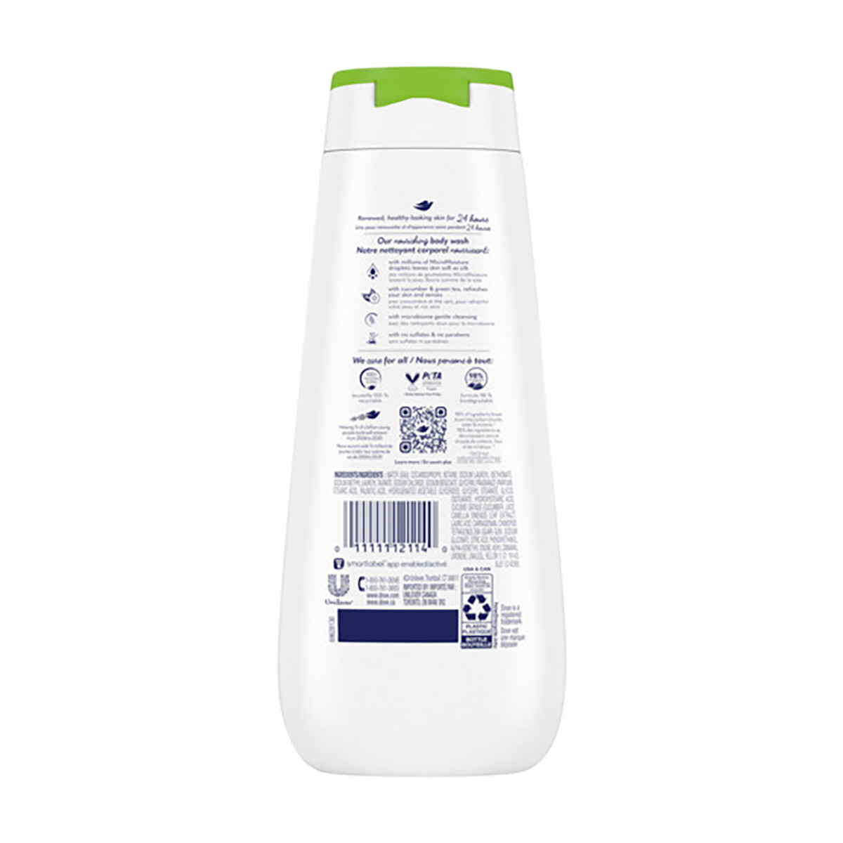 - 24HR RENEWING MICROMOISTURE: Dove Refreshing Cucumber and Green Tea Body Wash refreshes and hydrates dry skin, leaving it renewed and healthy-looking for 24 hours