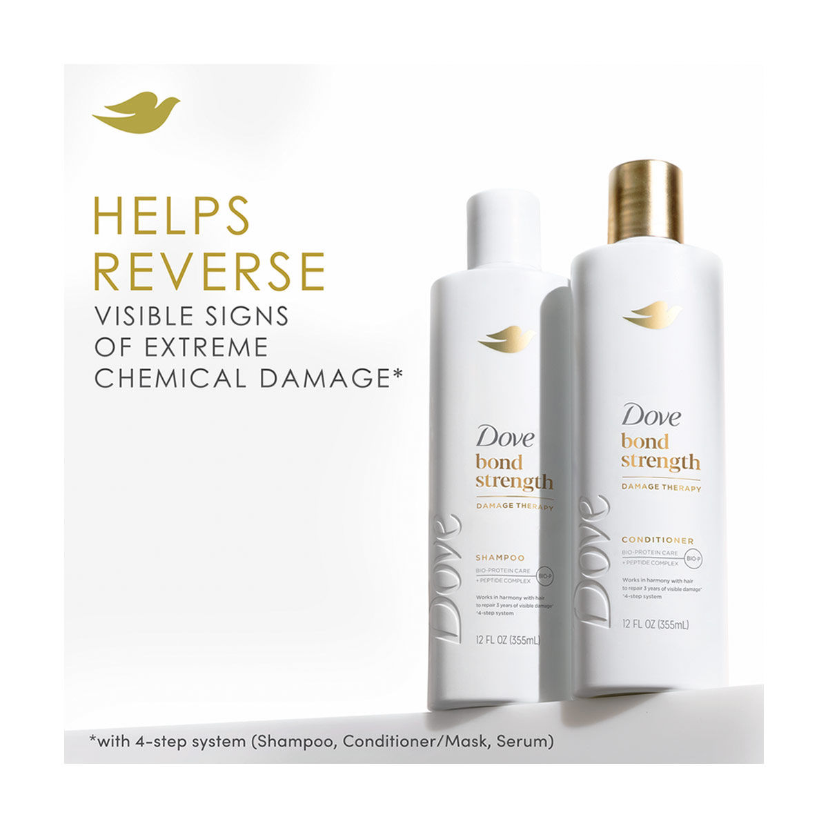 - SHAMPOO & CONDITIONER FOR CHEMICALLY DAMAGED HAIR: This Dove shampoo and conditioner with Peptide Complex repairs 3 years of visible damage* *with 4-step system
