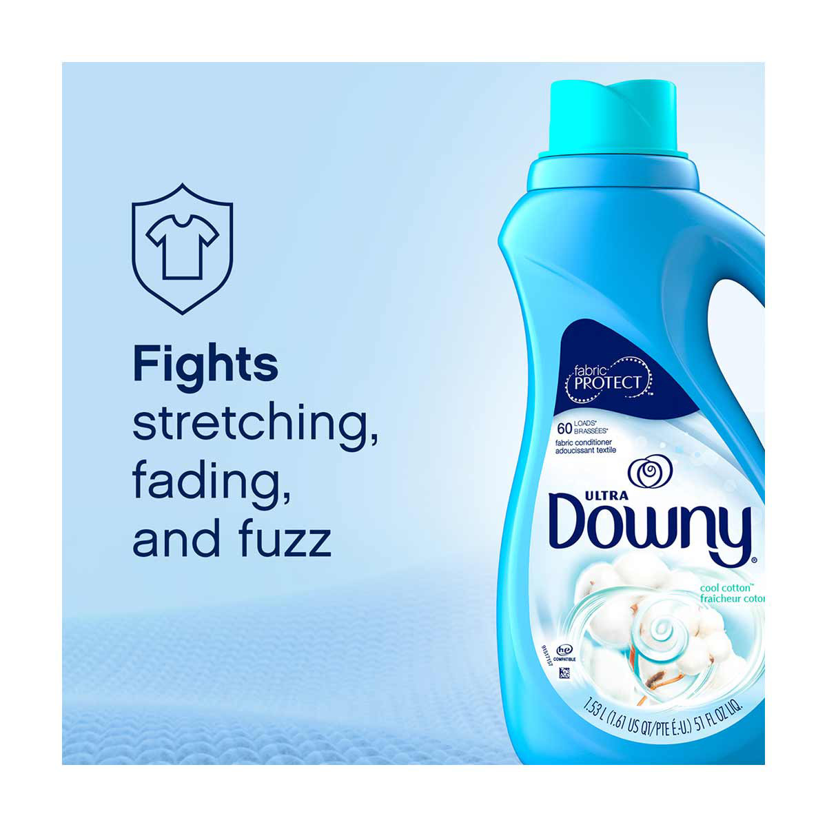 • Downy Liquid Fabric Conditioner helps prevent stretching, fading, and fuzz