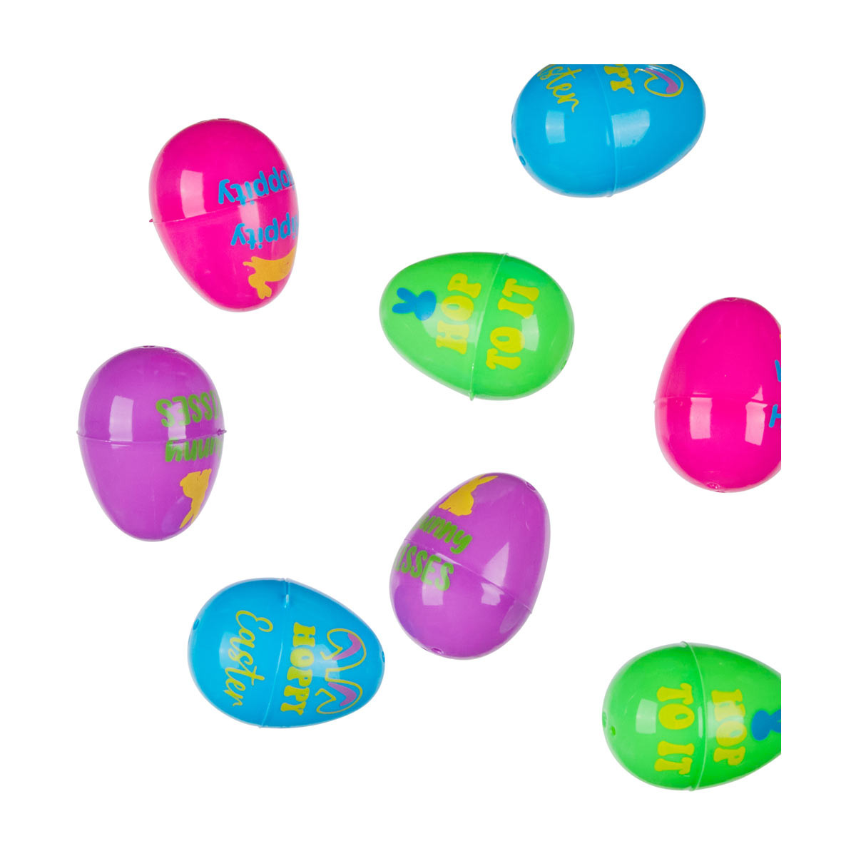 • Includes 8 reusable plastic Easter eggs in assorted colors and designs