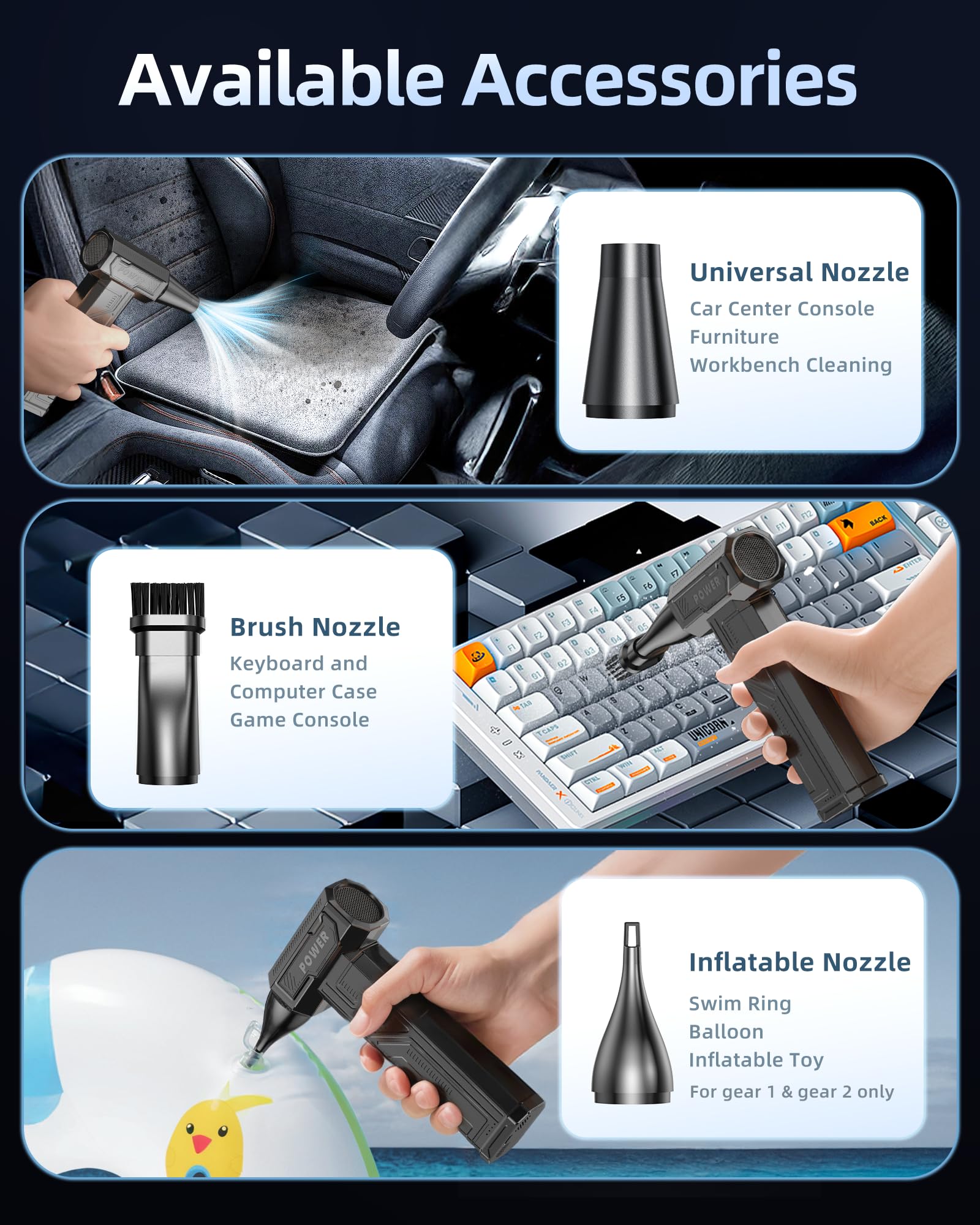 - High-Speed Performance: The electric air duster boasts an impressive 300,000 RPM, delivering powerful airflow for efficient dust and debris removal, making it ideal for cleaning electronics, home, and car interiors.