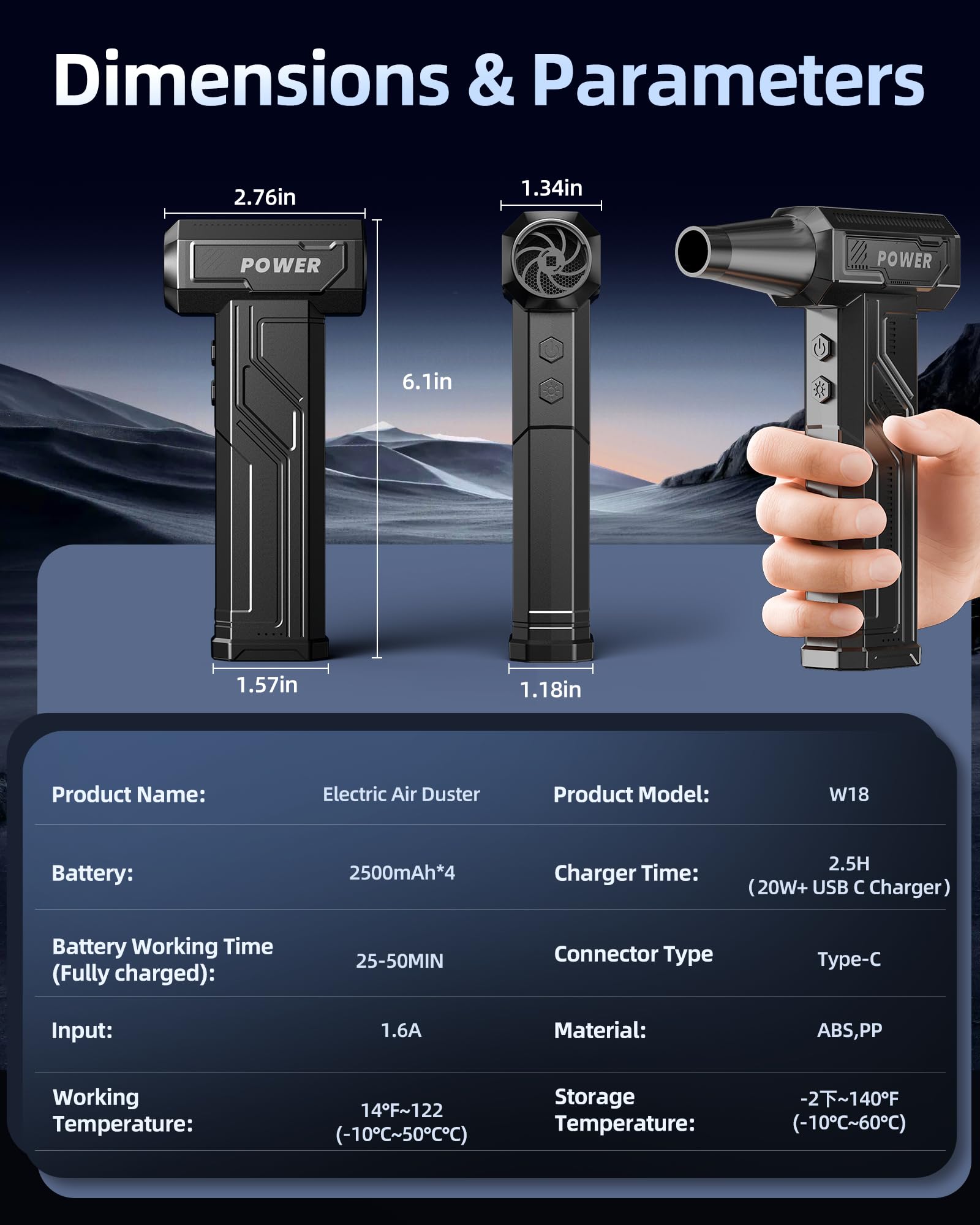 - Reliable Warranty & Support: The Electric Air Duster comes with a 12-month warranty and professional after-sales service, ensuring peace of mind and prompt resolution for any product-related issues.