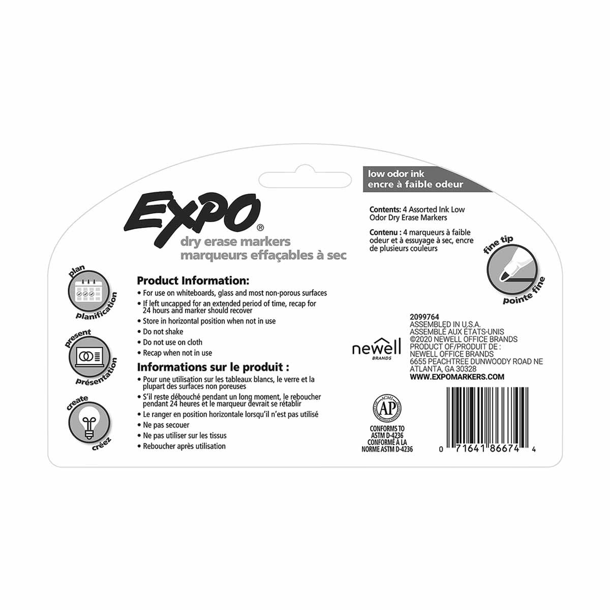 Expo Low Odor Fine Tip Dry Erase Markers, 4 ct