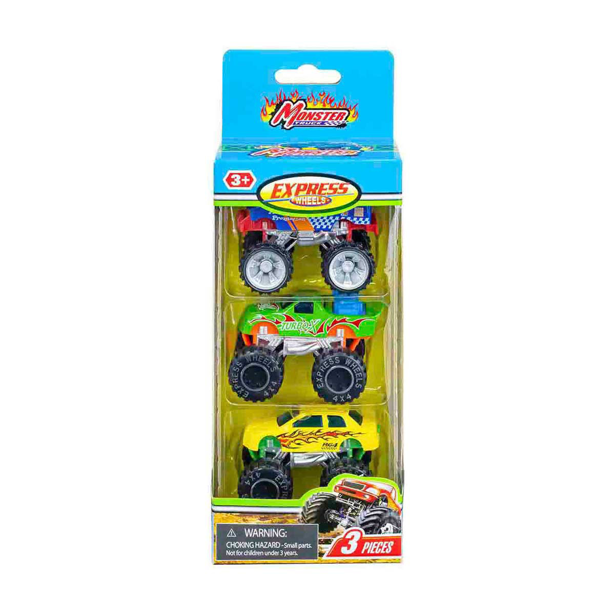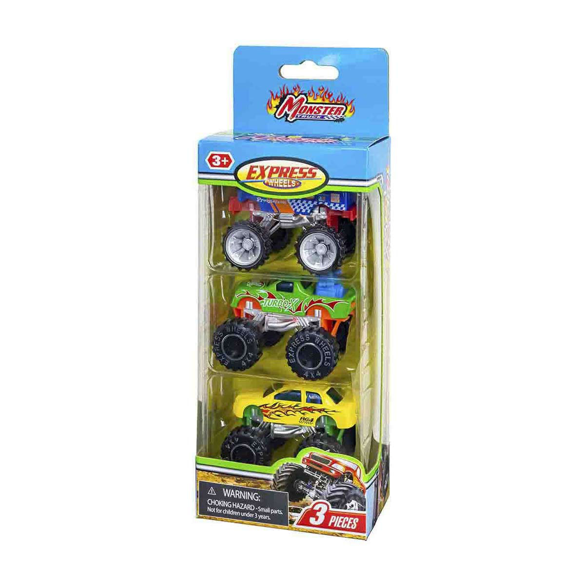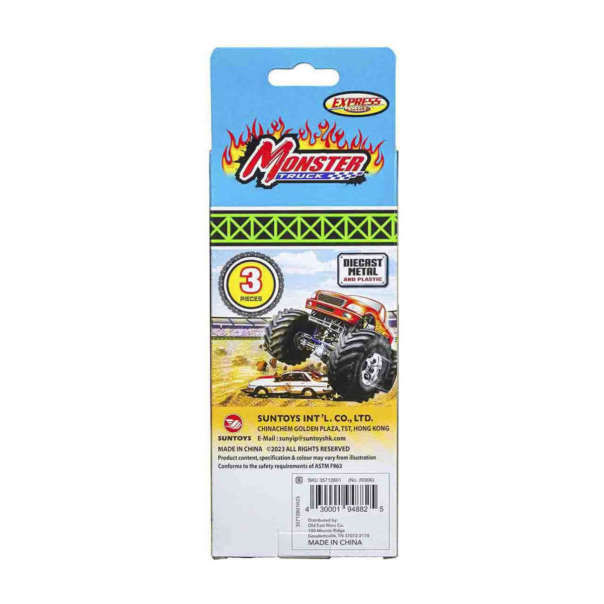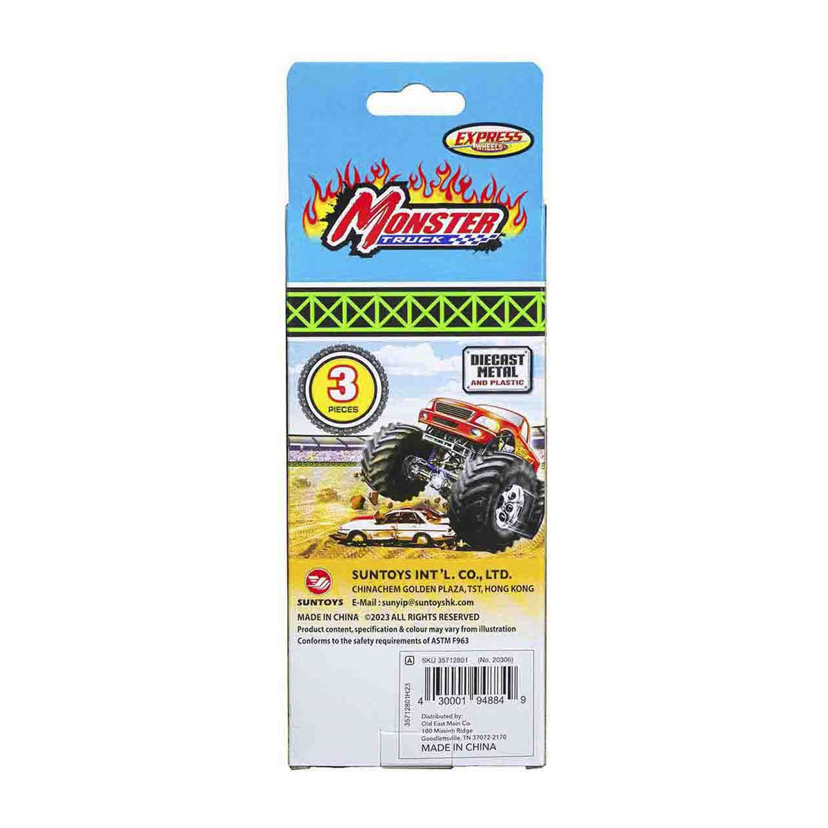 • Each set includes 3 pc decorated die cast Monster Truck.