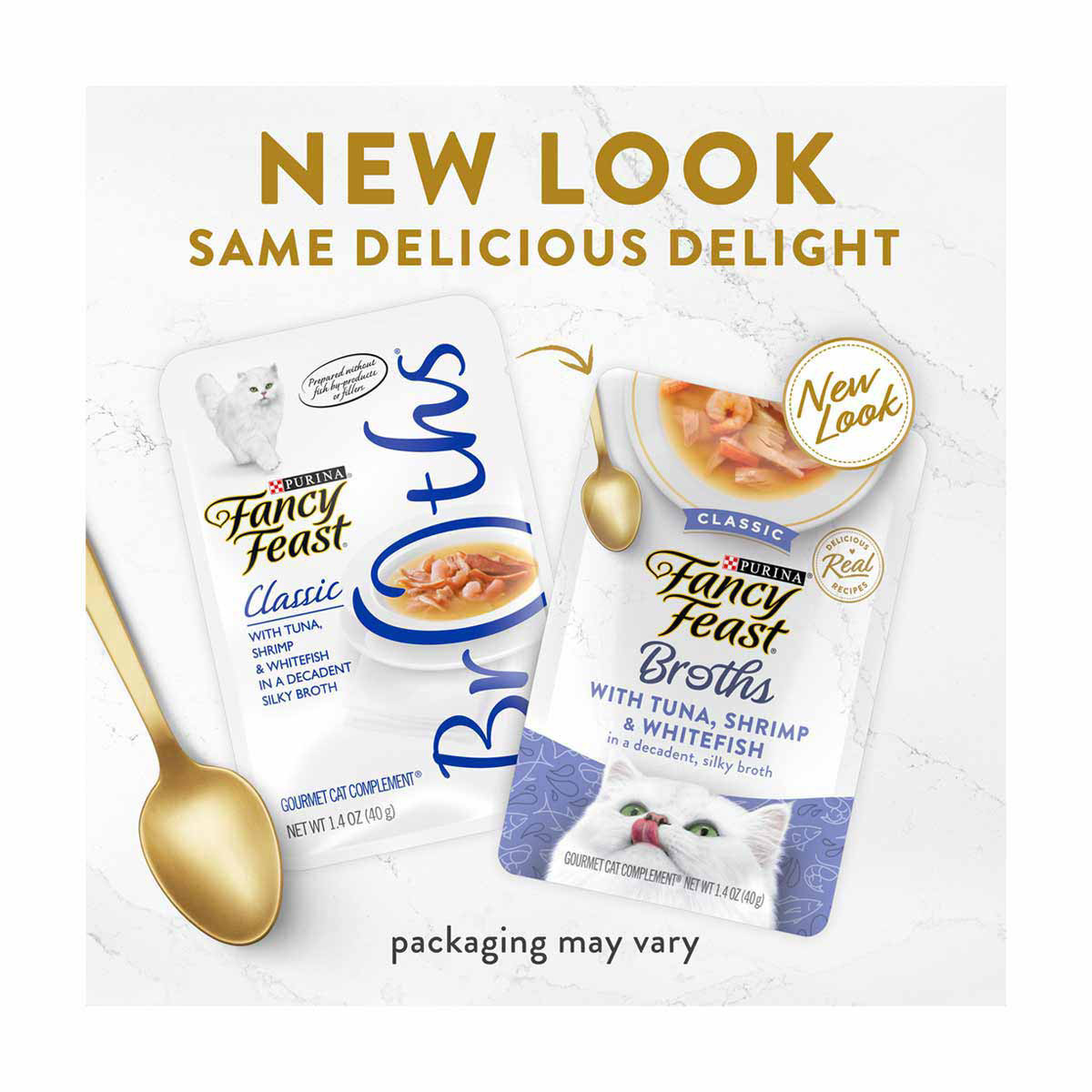 Fancy Feast Broths with Tuna, Shrimp & Whitefish Cat Food Complement, 1.4 oz
