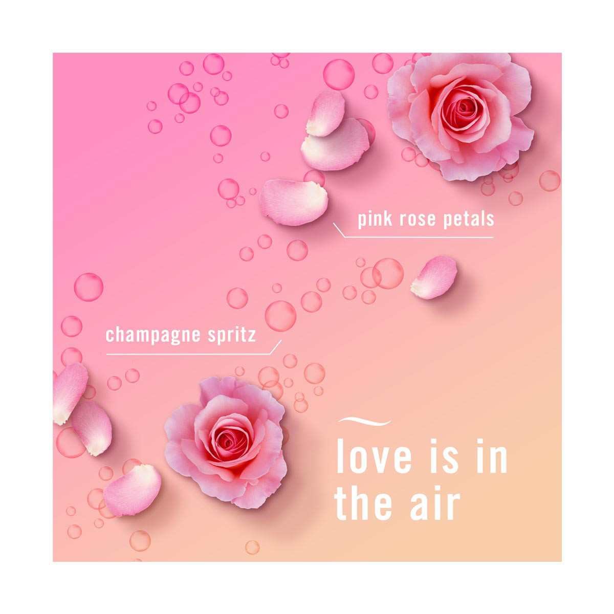 - Pink rose petals and champagne spritz make the Romance & Desire scent