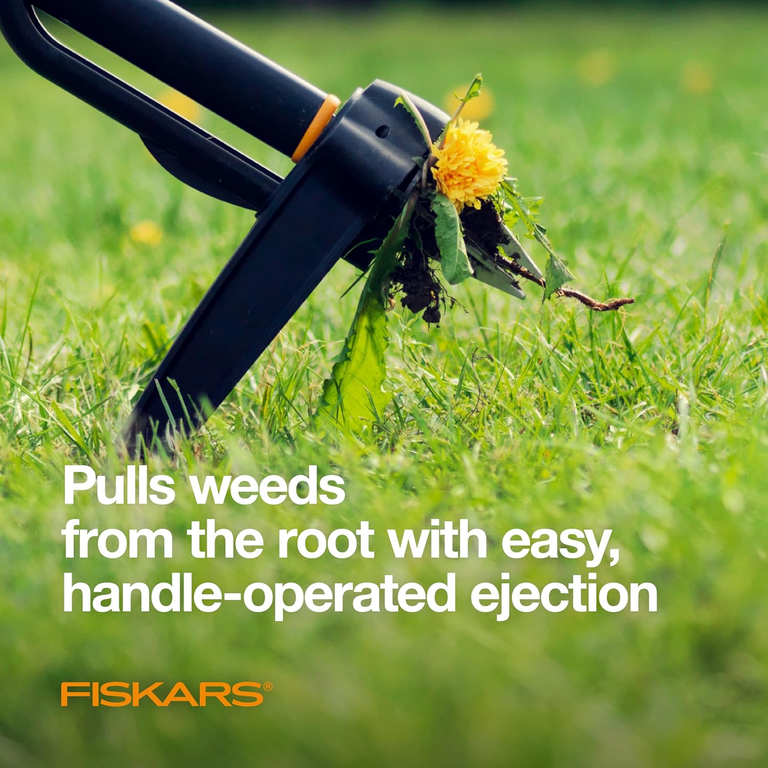 - INCLUDES: 1 Fiskars 39" long hand weeder to permanently remove dandelions, thistles, and other invasive weeds; Included lifetime warranty