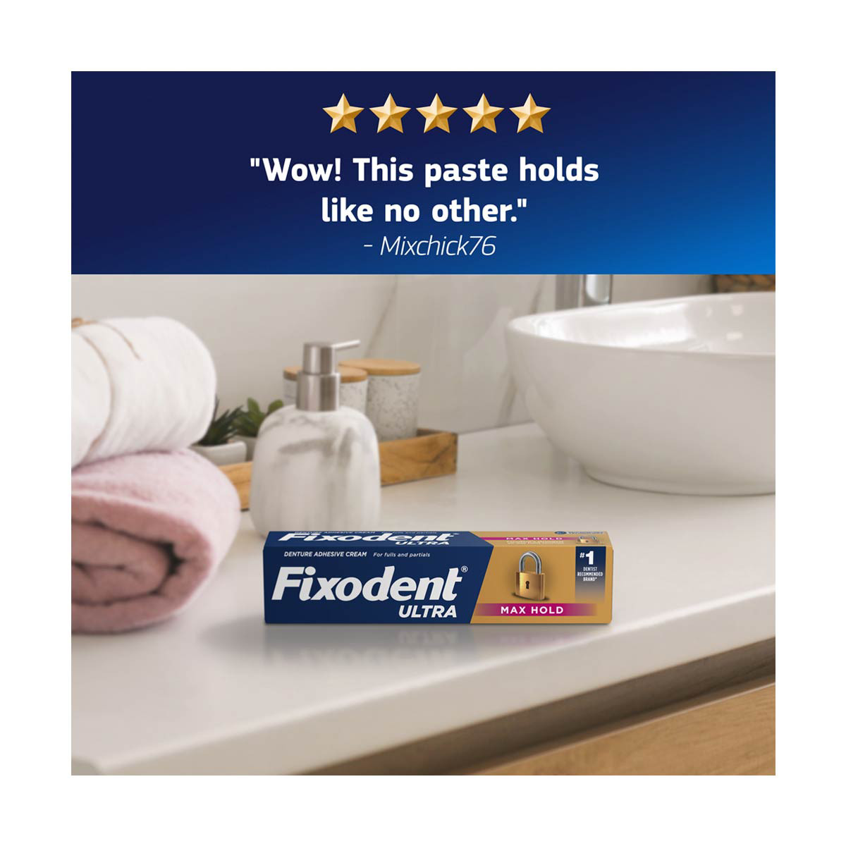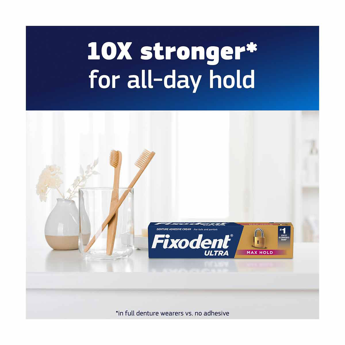 • You will receive (1) 2.2oz tube of Fixodent Ultra Max Hold Denture Adhesive