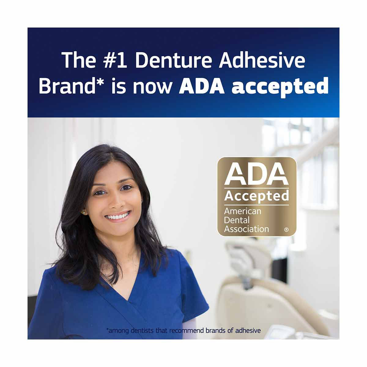 • Clinically Proven in full denture wearers stronger hold vs. no adhesive