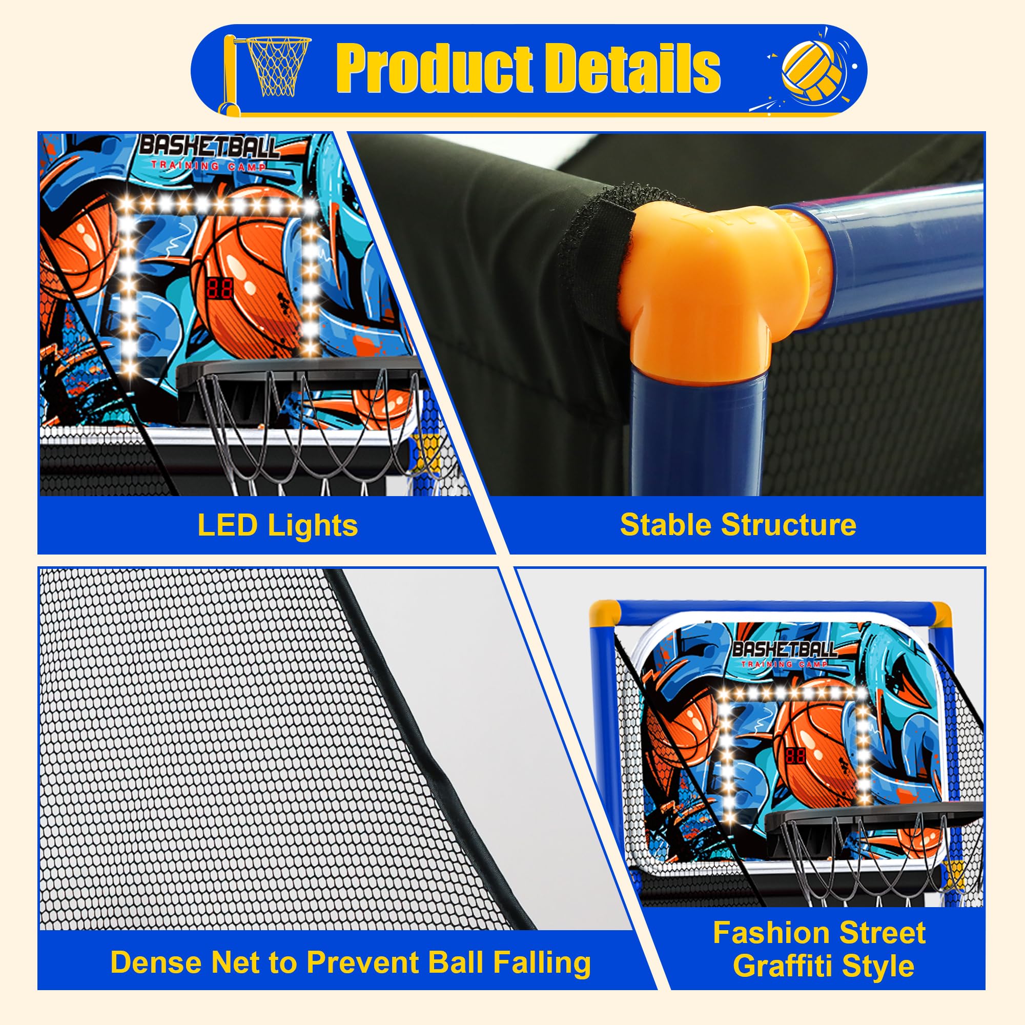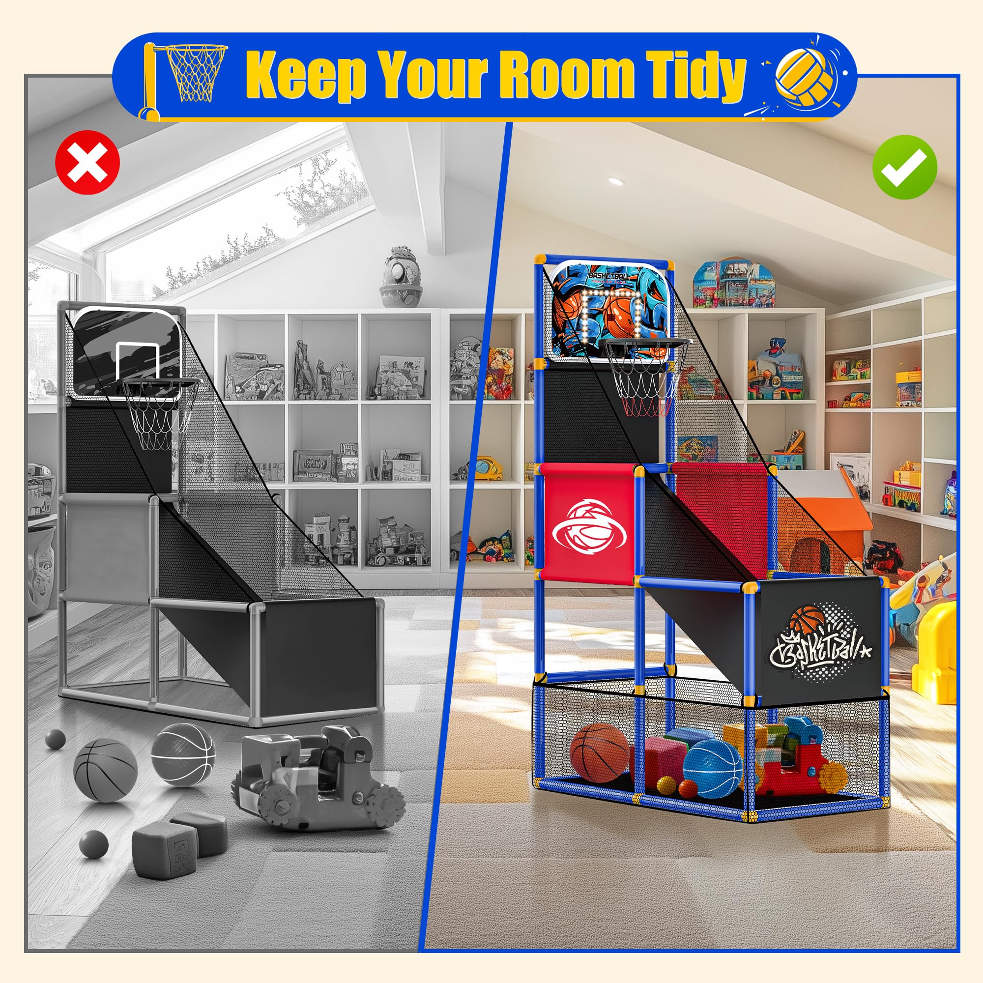 - Suitable for indoor & outdoor:Our arcade set promotes physical activity while providing endless fun for kids and families.Whether it’s a rainy day indoors or a sunny afternoon in the backyard, this toy is the perfect addition to any family carnival game setup.Designed with convenience in mind, the lightweight and removable structure allows for effortless transportation and storage.Ideal for families on the go, it makes it simple to bring the excitement of arcade basketball anywhere you choose