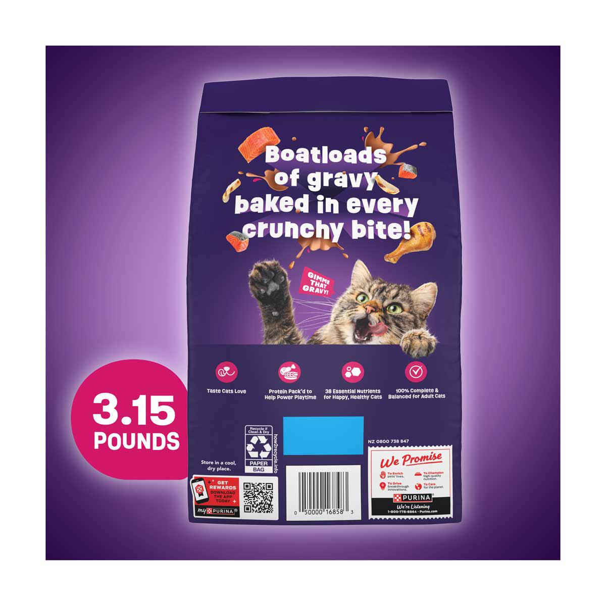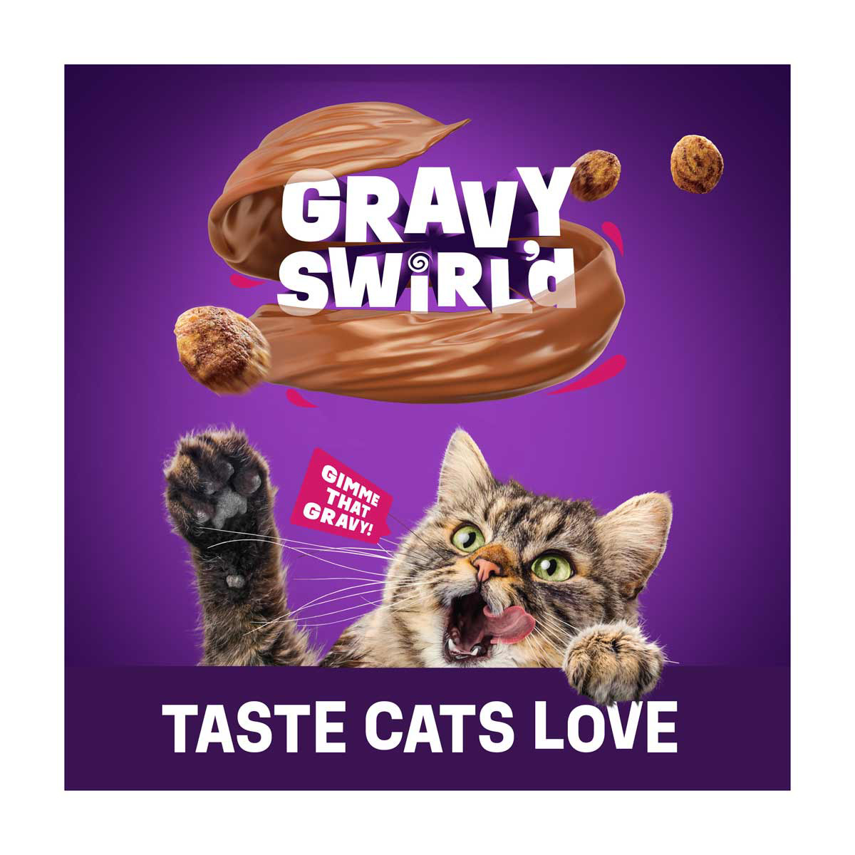 - Cat kibble with swirls of gravy baked right into every crunchy bite to entice her to her dish