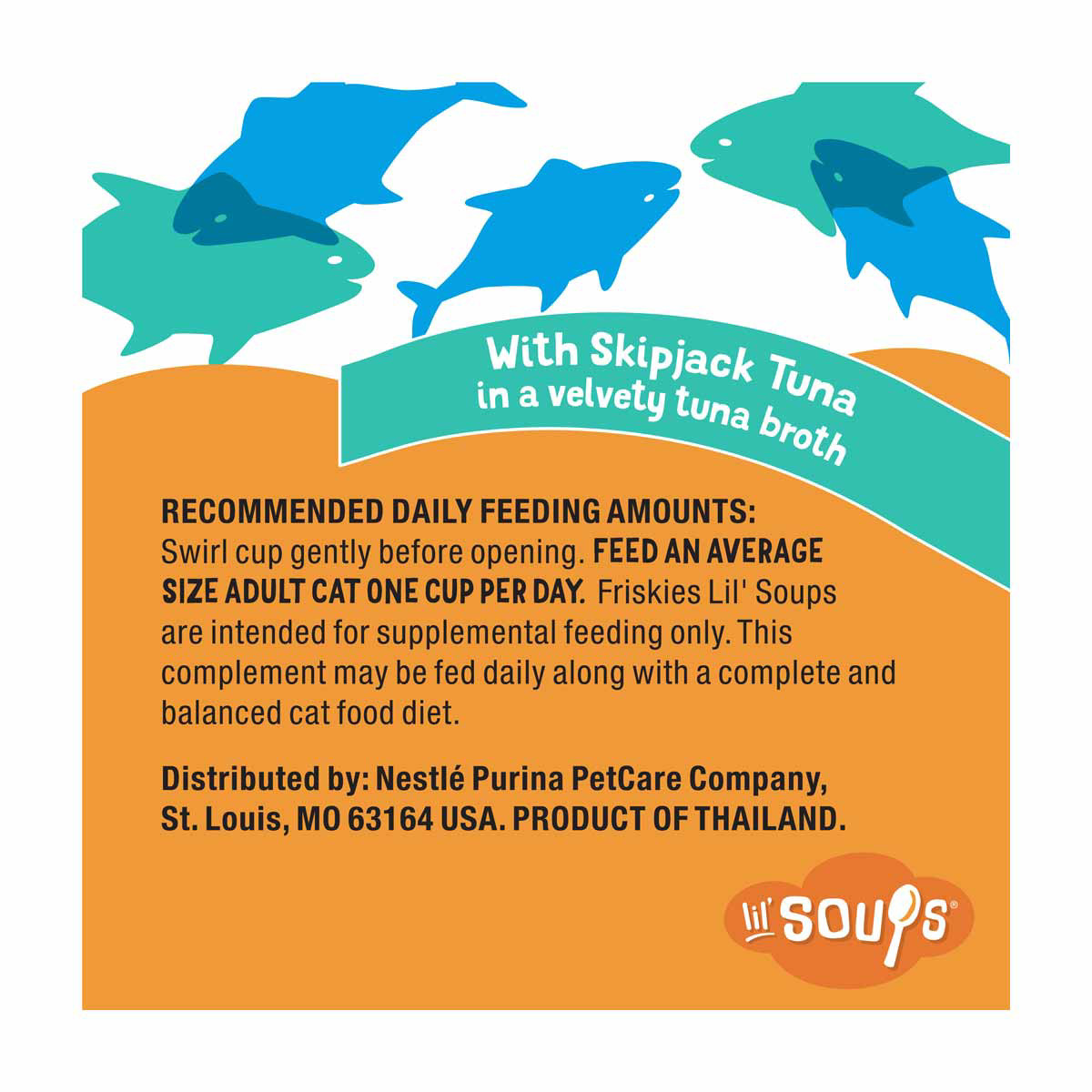 - Friskies Lil Soups for cats made without artificial colors, flavors, preservatives, by-products or fillers