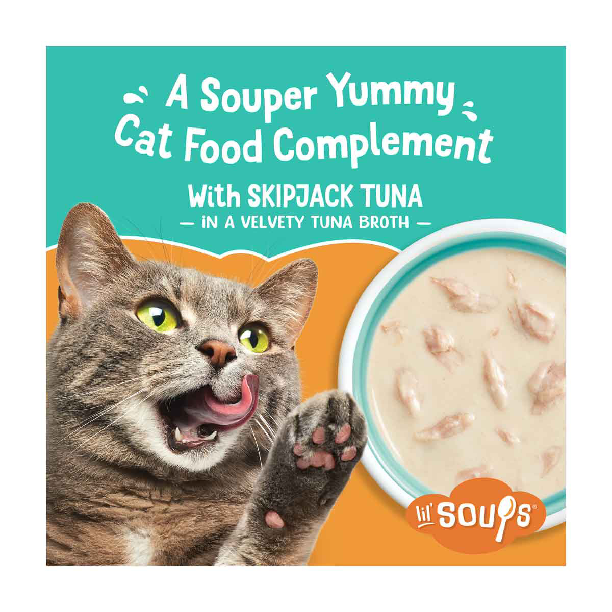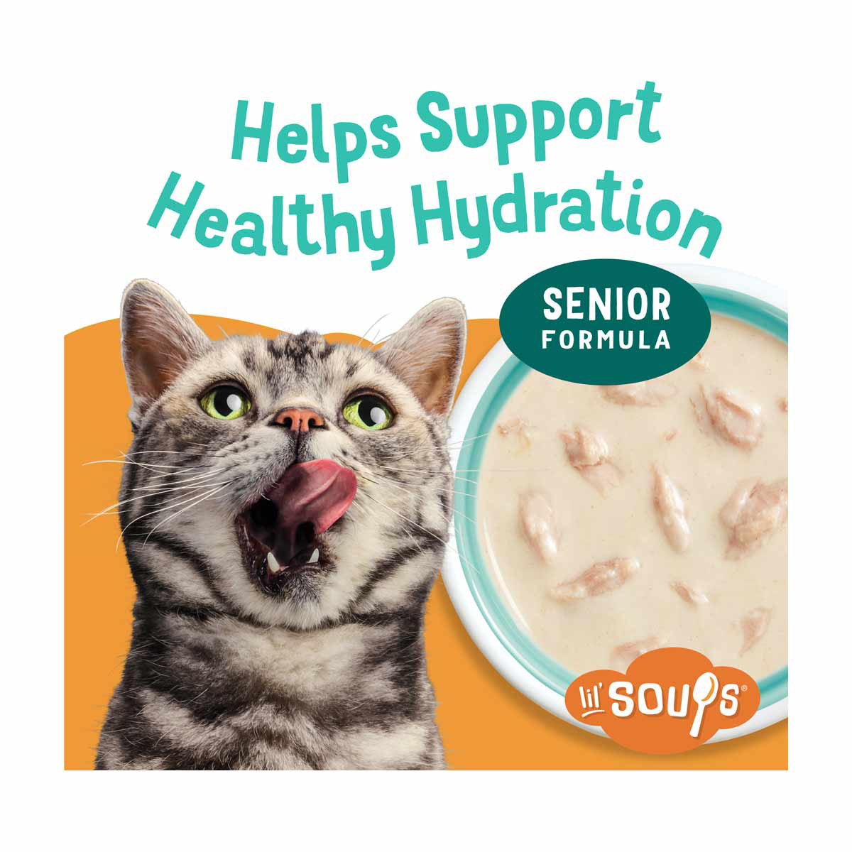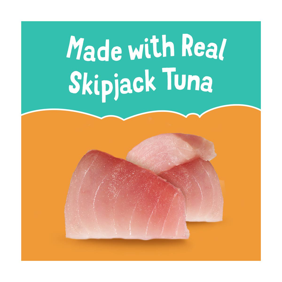 - Lickable grain free cat treats made with real tuna and intended as a complement to your senior cat's complete and balanced diet