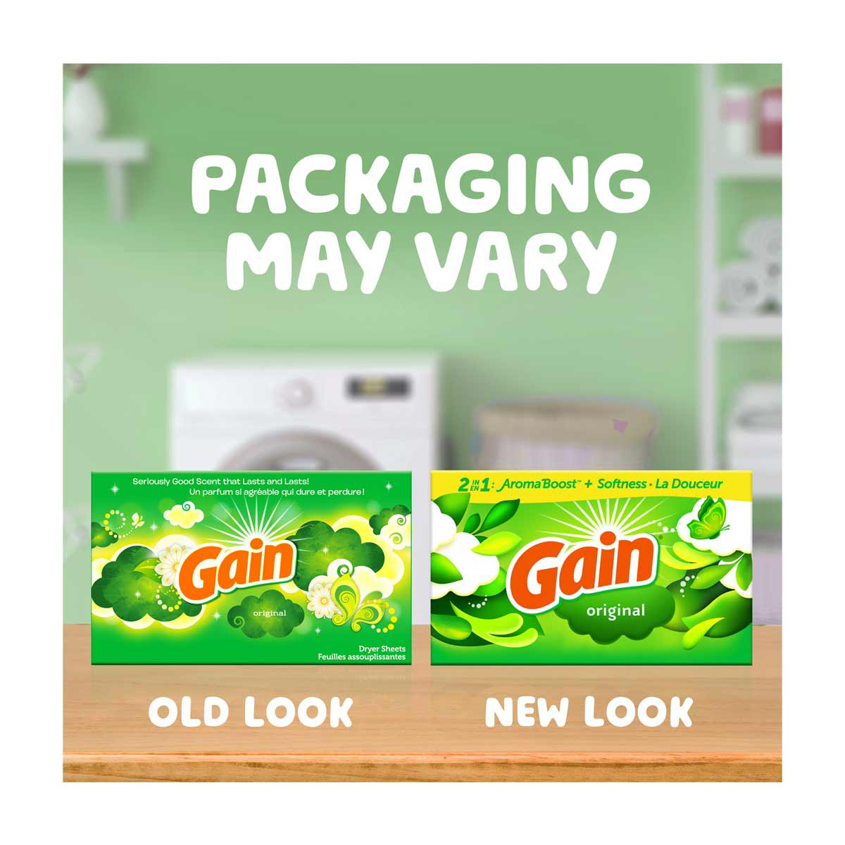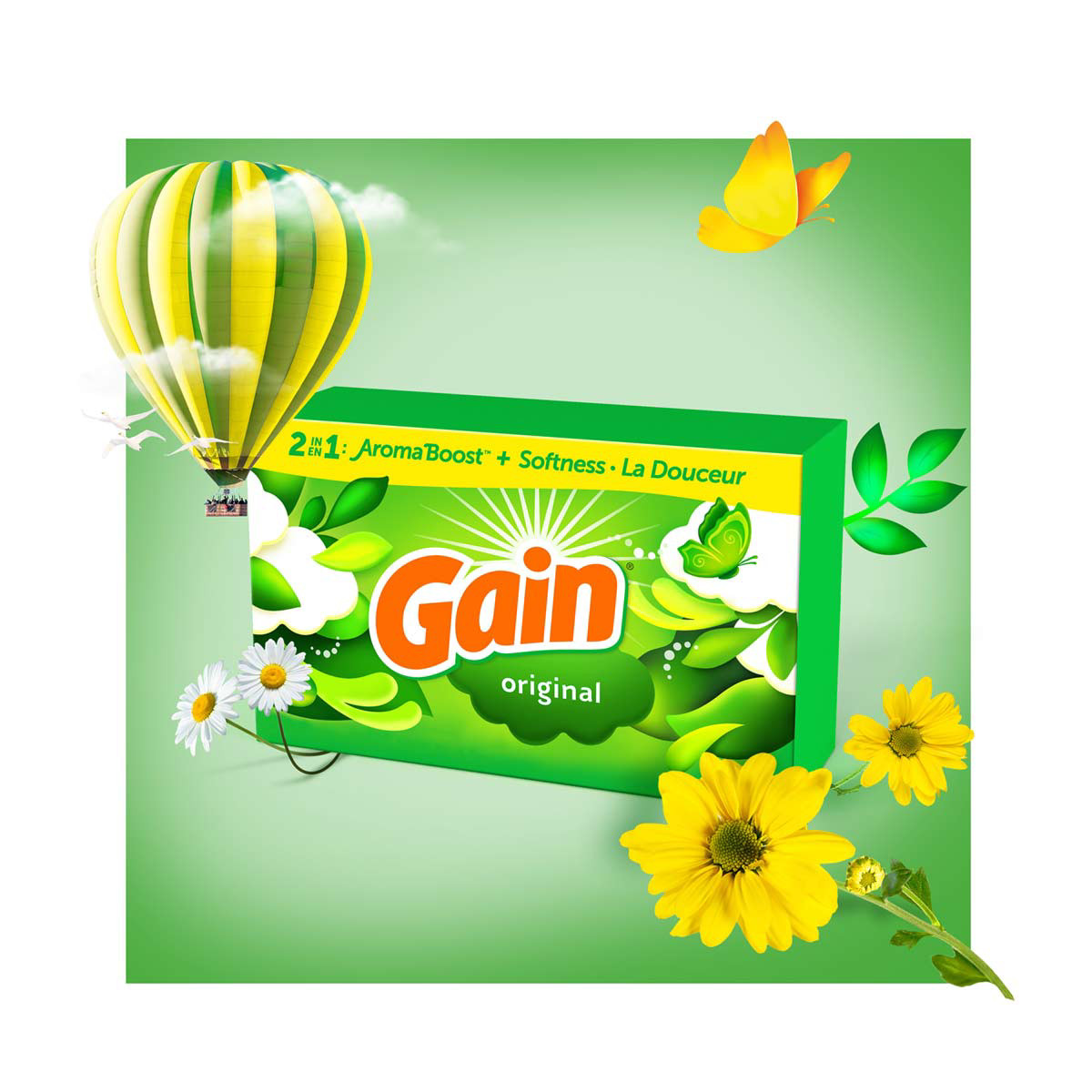 • Gain dryer sheets, 105 Count, Original Scent, Laundry Fabric Softener Sheets with 2-in-1 Aromaboost Plus Softness