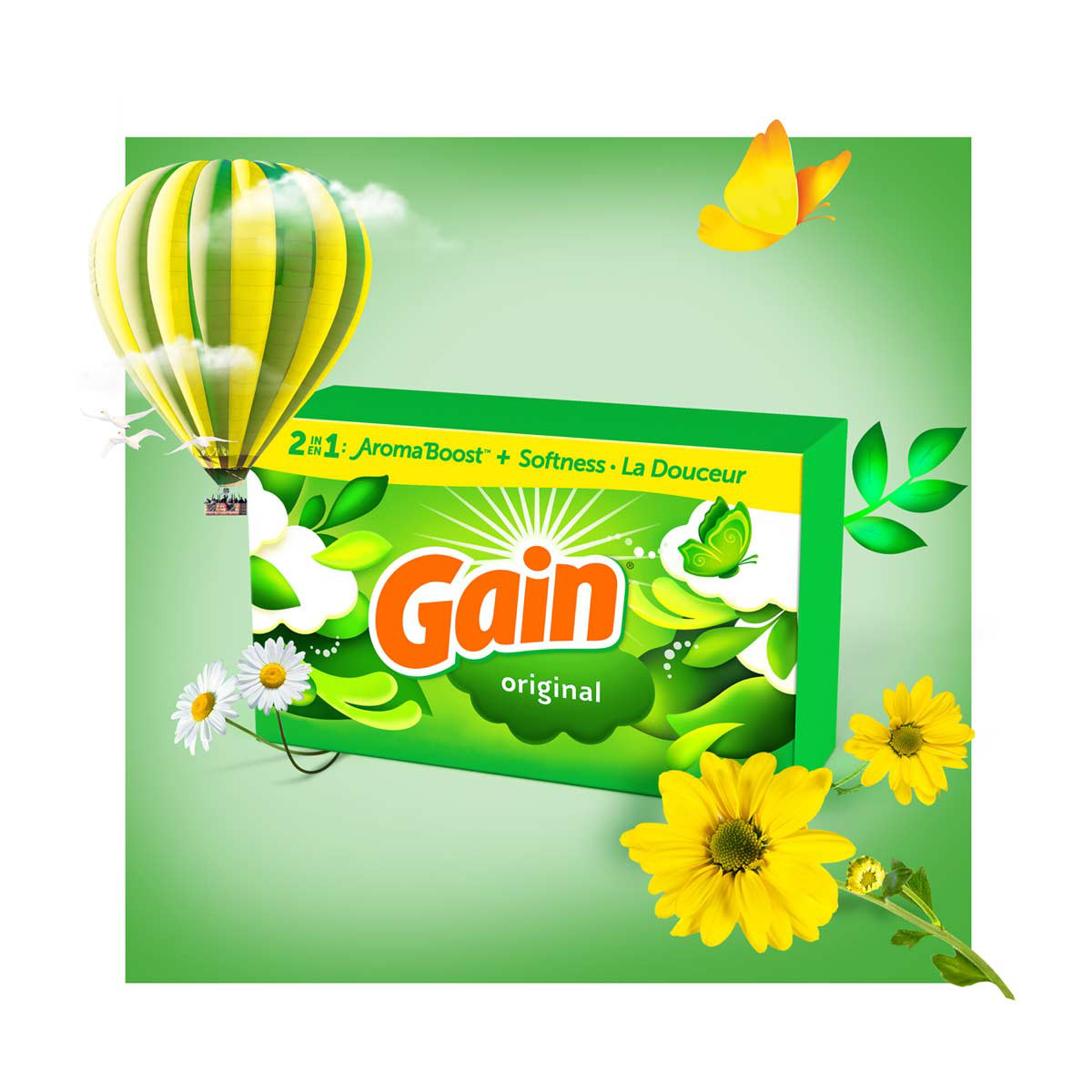 • Gain dryer sheets, 34 Count, Original Scent Laundry Fabric Softener Sheets with 2-in-1 Aromaboost Plus Softness