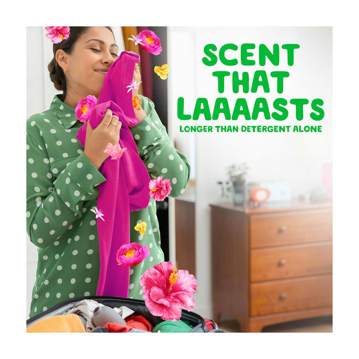 • Scent that lasts longer than detergent alone