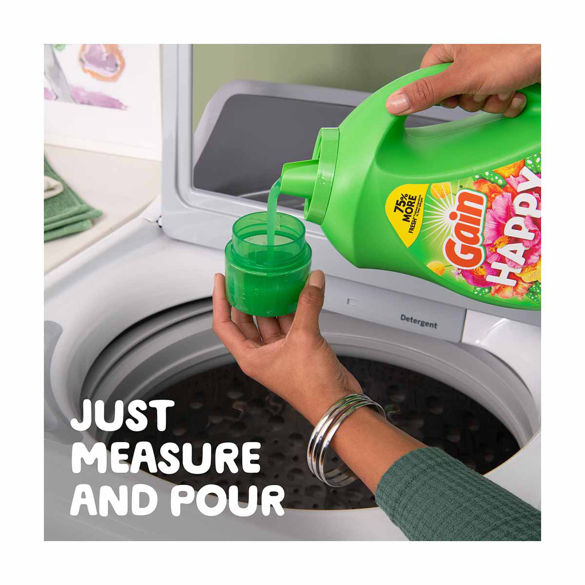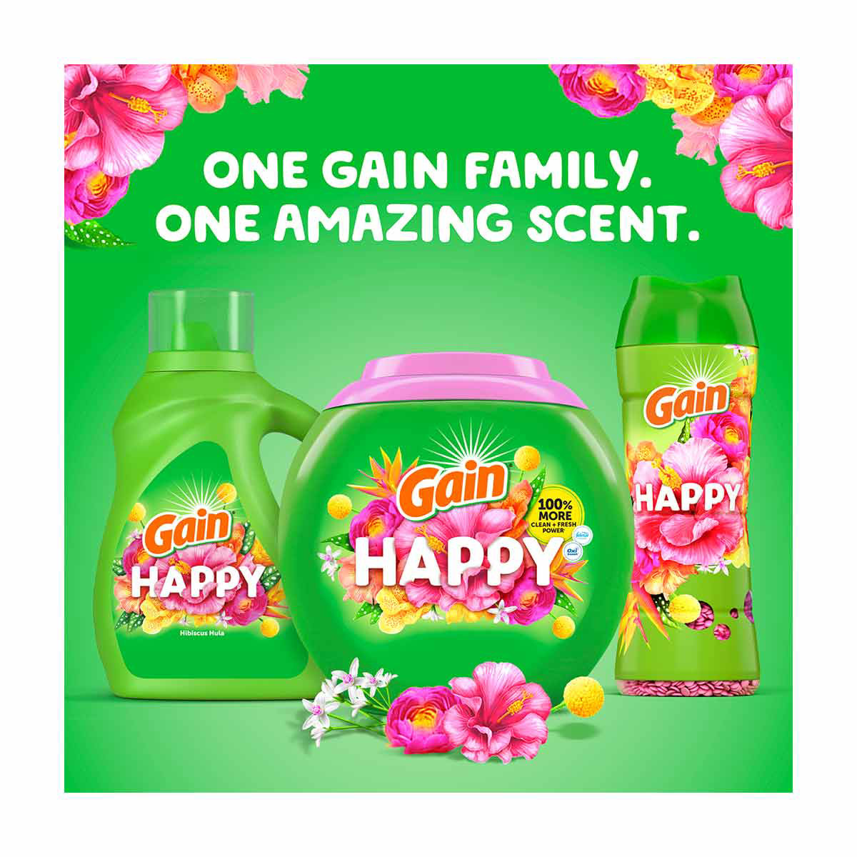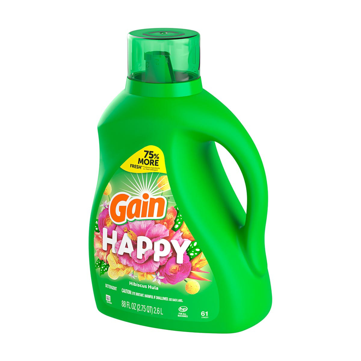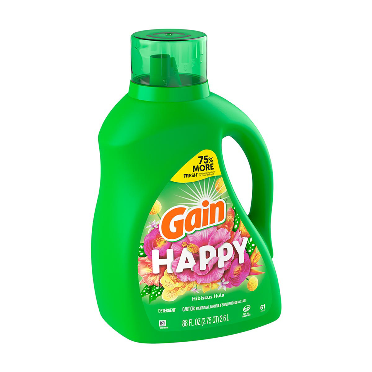 • Gain Liquid Laundry Detergent, Happy, Hibiscus Hula, 88 fl oz, 61 loads, Laundry Detergent Liquid Soap, HE compatible