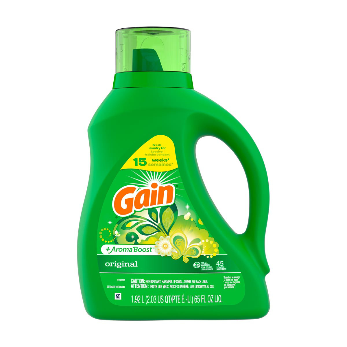 • Gain Liquid Laundry Detergent, Original Scent, 65 fl oz, 45 loads, Freshness + Odor Fighting, Laundry Detergent Liquid Soap, HE compatible