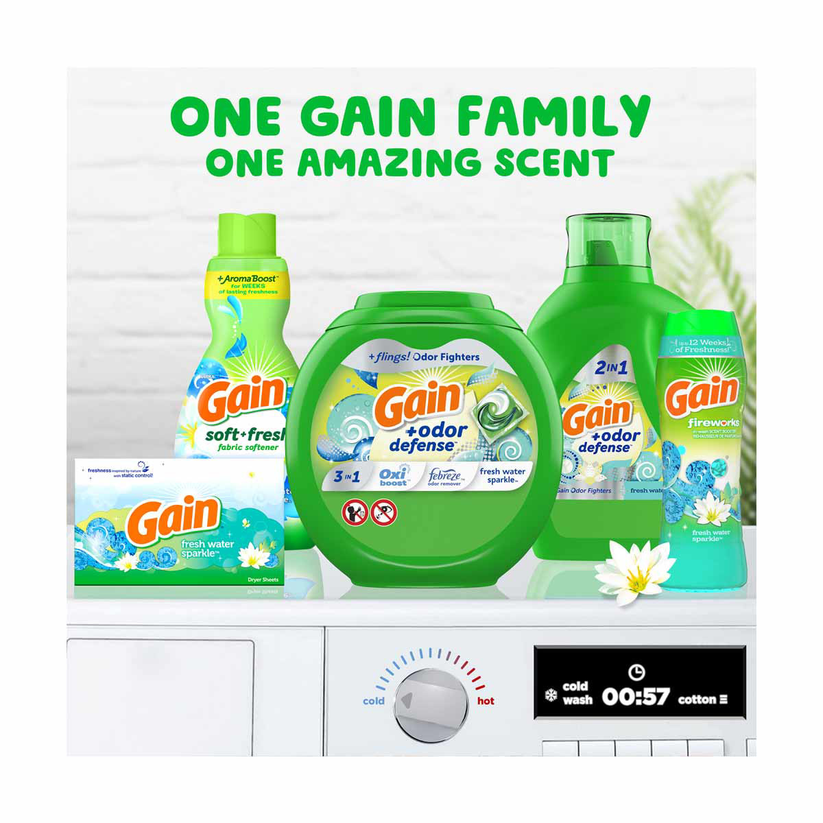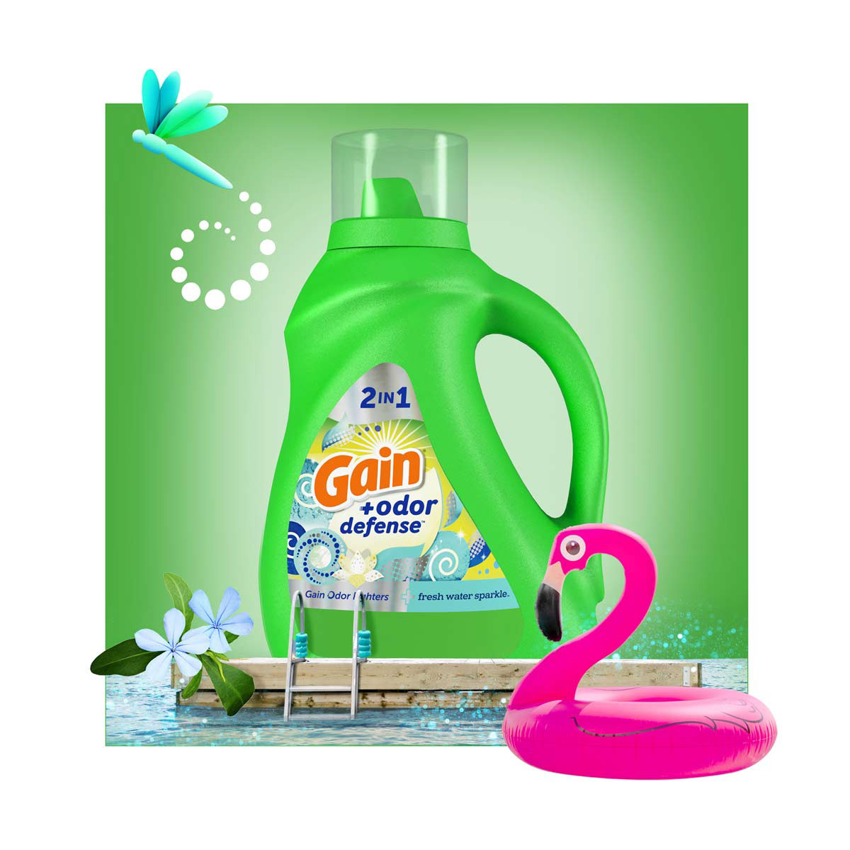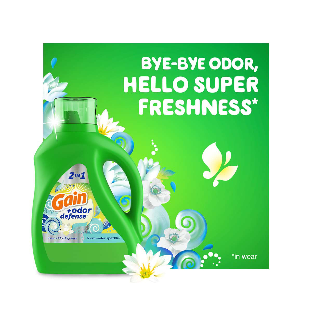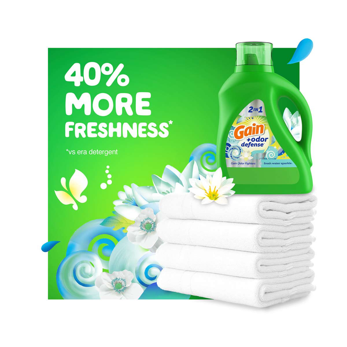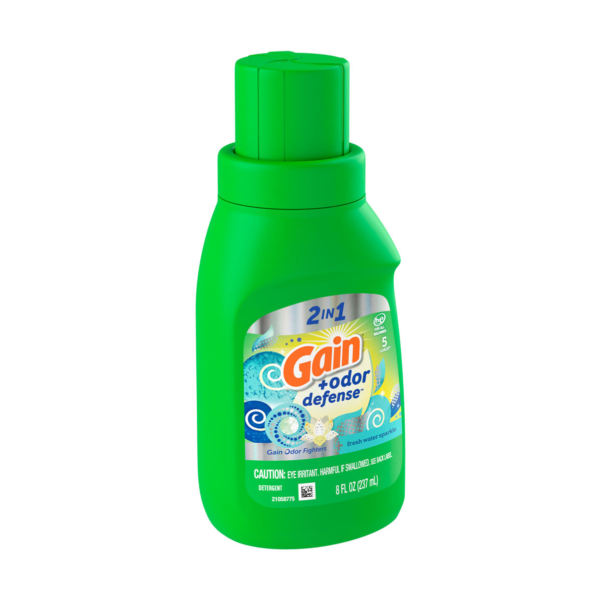 • Gain + Odor Defense Liquid Laundry Detergent, Fresh Water Sparkle Scent, 5 Loads, HE Compatible