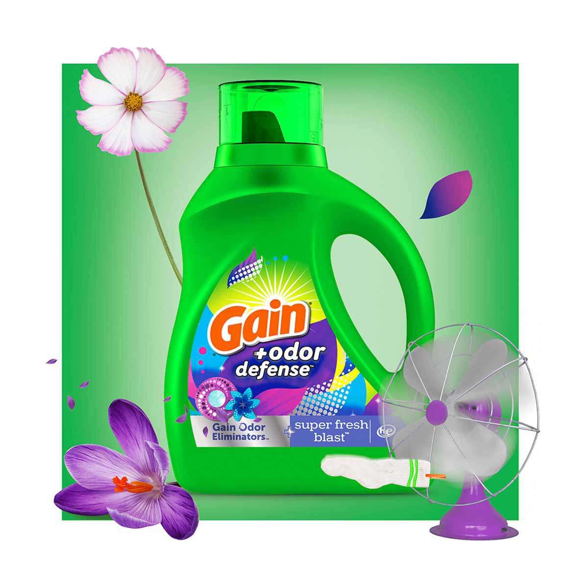 • ODOR FIGHTING: Bye-bye, stink! Gain Odor Defense Liquid Laundry Detergent lifts away tough in-wear odors at the source, instead of just masking them. So you get the funk out of your clothes, leaving only the delightful scent of nature