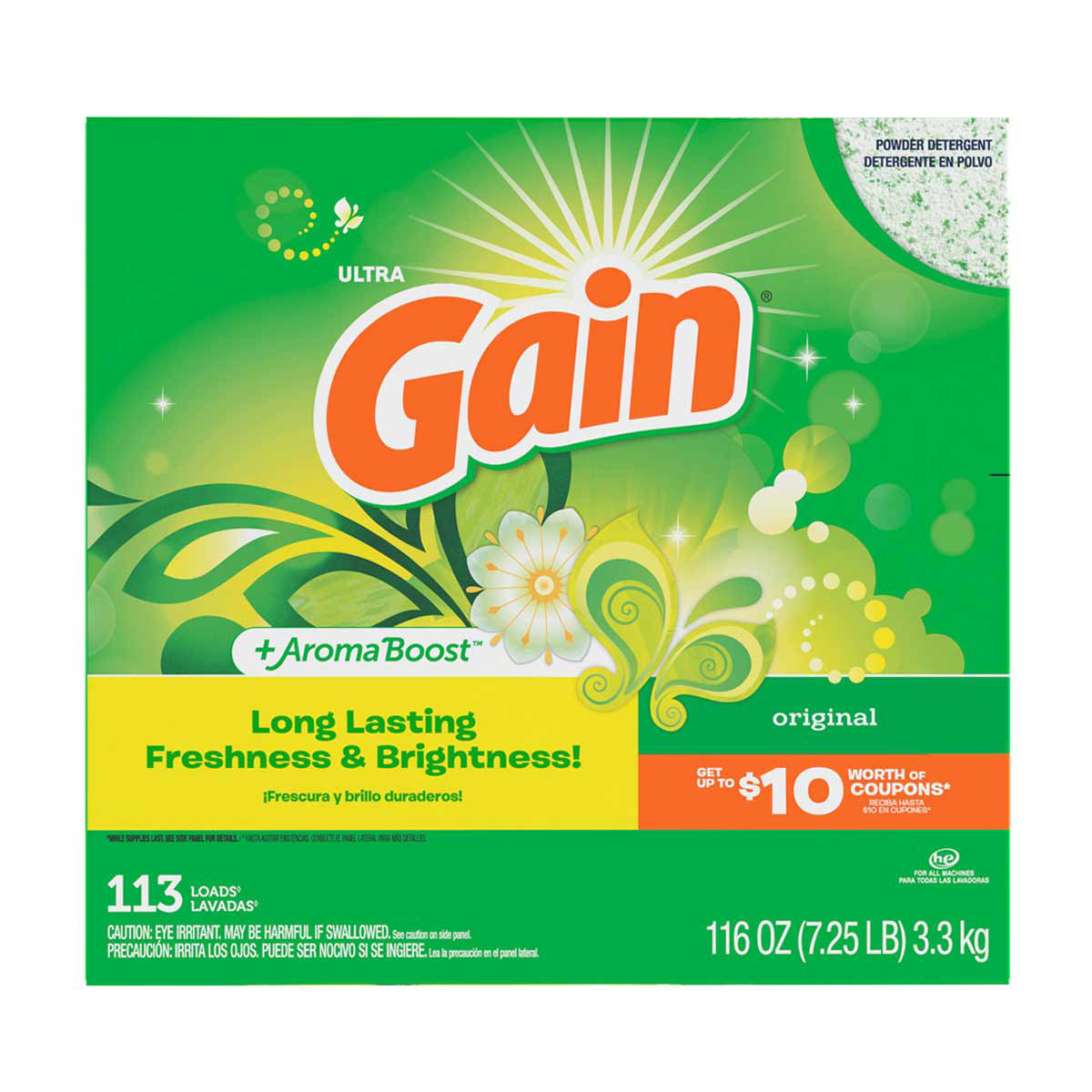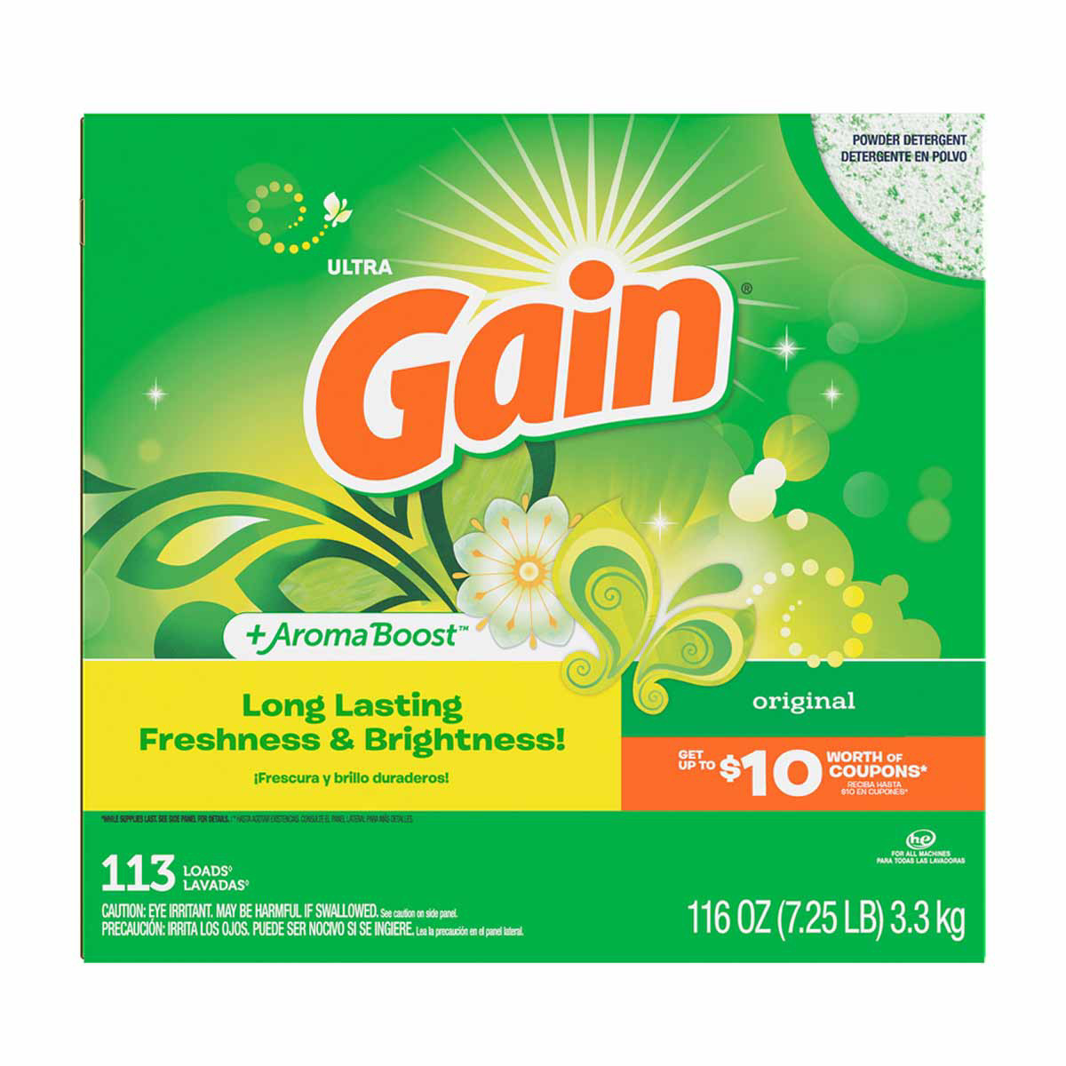 • Gain Powder Laundry Detergent for Regular and HE Washers, Original Scent, 116 ounces, 113 loads