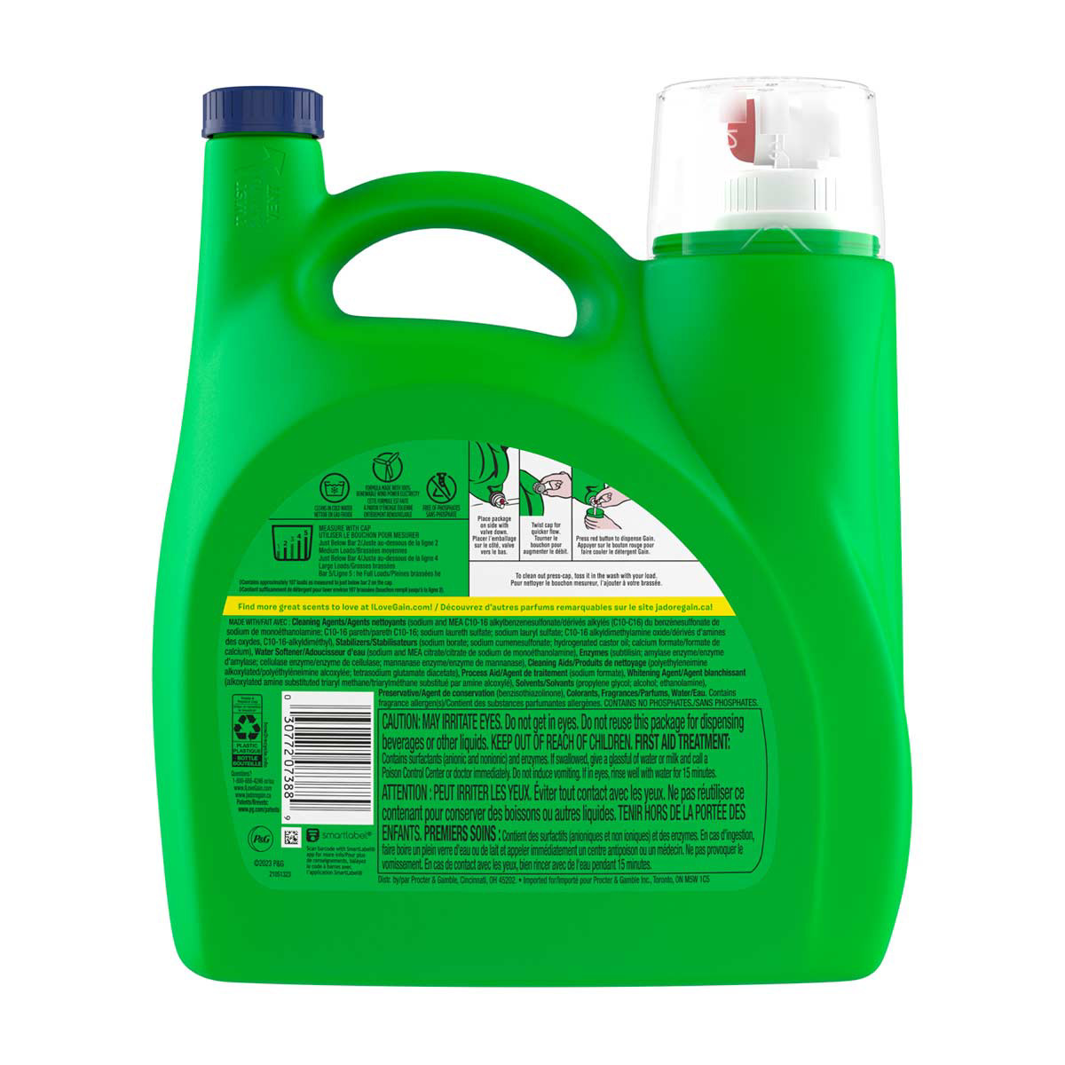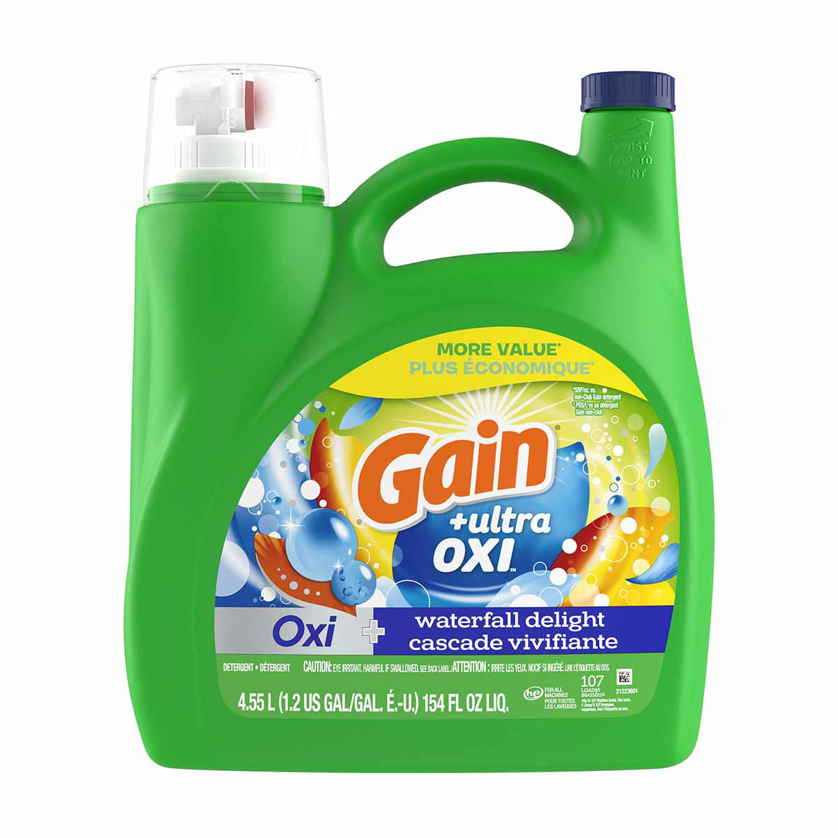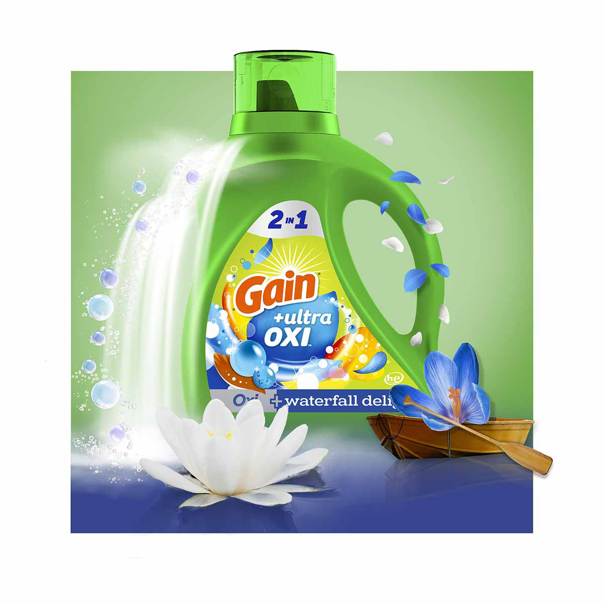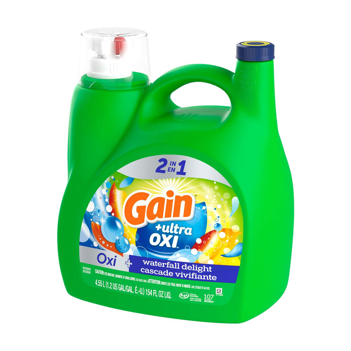 - LOOONG-LASTING: Gain Ultra Oxi Liquid Laundry Detergent Waterfall Delight Scent capsules break for scent that continues to release during regular wear for lasting freshness for up to 6 weeks from wash until wear