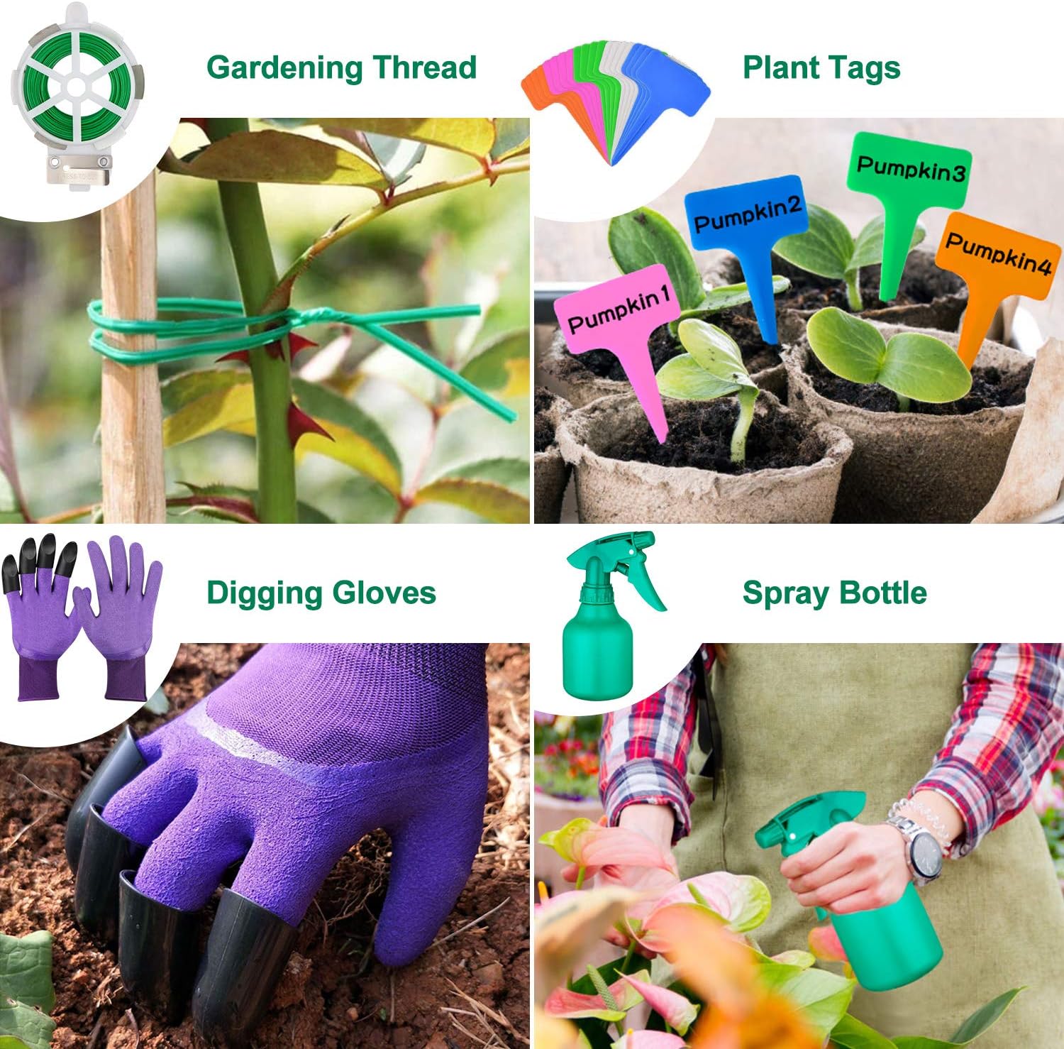 - ✔83 Pcs All-In-One Garden Set: Tudoccy Garden Tool Set will meet all your needs of garden works. Trowel, Transplanter, Hand Rake, Cultivator, Weeder, Pruner, Spray Bottle, Plant Rope, Garden Seeder, 20pcs Butterfly Stakes, 40pcs Plant Tags, 2pcs Gloves with Fingertips Claws, 2 Pack Plant Self Watering Spikes, 9pcs Mini Succulent Tools Set, and Tote Organizer