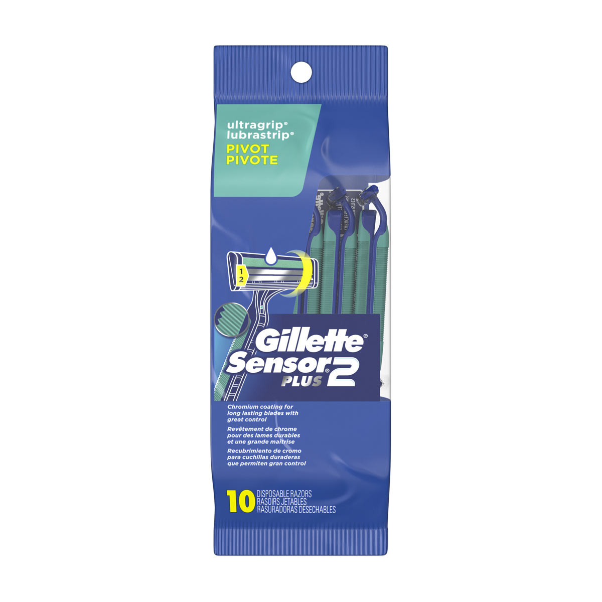 Gillette Sensor2 Plus Pivoting Head Men's Disposable Razors, 10 Count