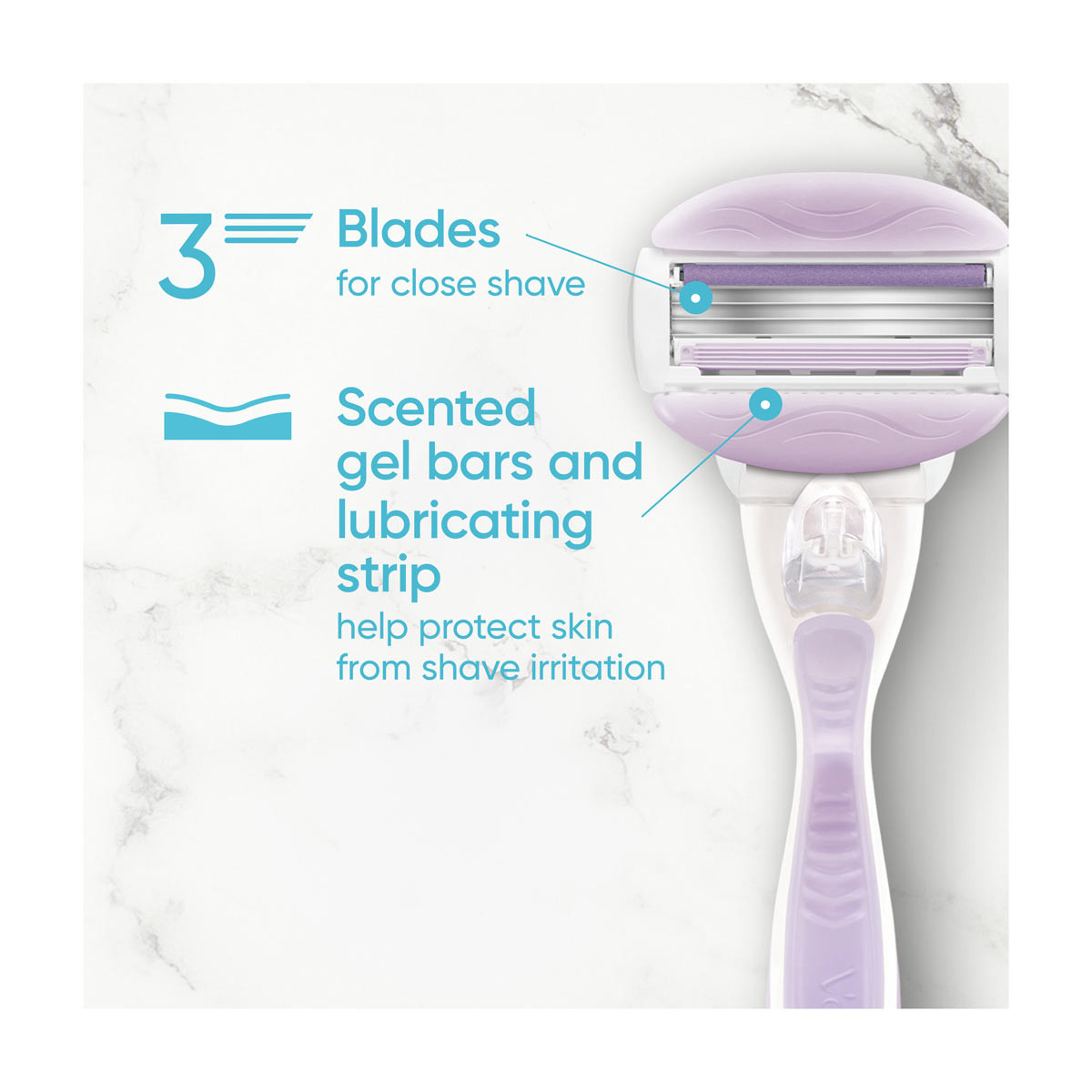 - 3 BLADES FOR A CLOSE SHAVE: Lubrication strip glides over skin to help protect from shave irritation