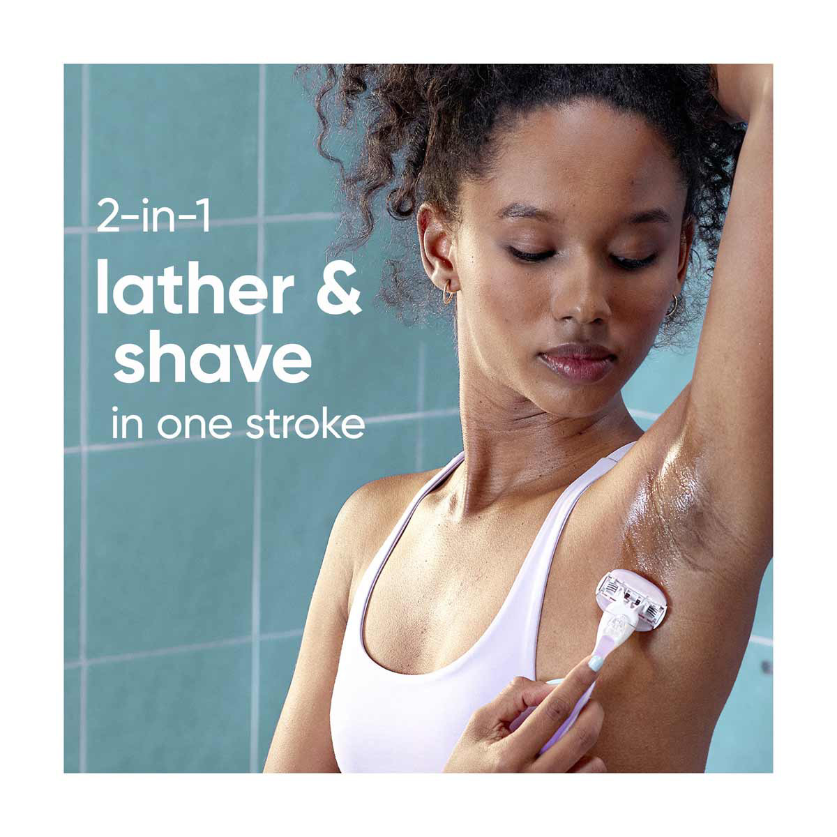 - 2-IN-1 SHAVE GEL BARS: The Venus ComfortGlide Razor lathers and shaves in every stroke--no shave cream required