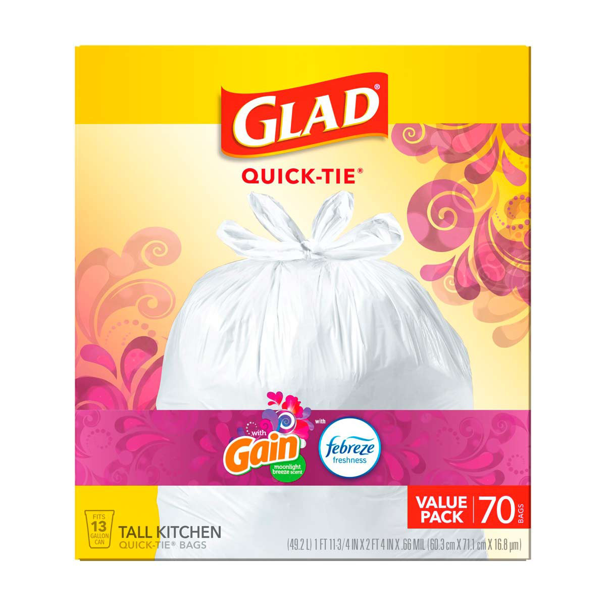 - 13 GALLON WHITE PLASTIC TRASH BAGS: Handle daily kitchen and household demands with Glad's ideally sized 13-gallon garbage bag. Package may vary.