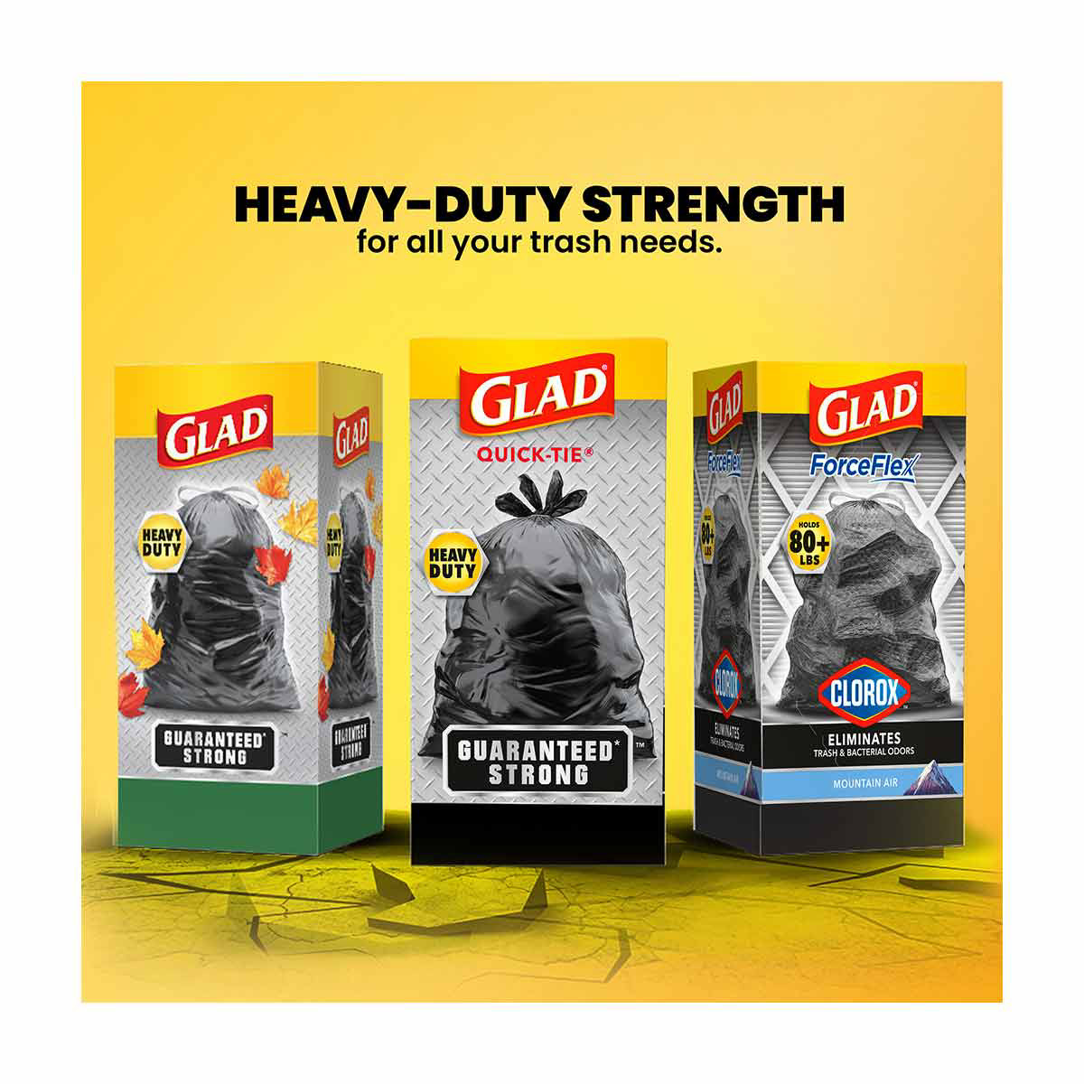 - GUARANTEED STRONG* FOR HEAVY LOADS: Handle heavy loads of trash with the guaranteed strength* of Glad large trash bags
